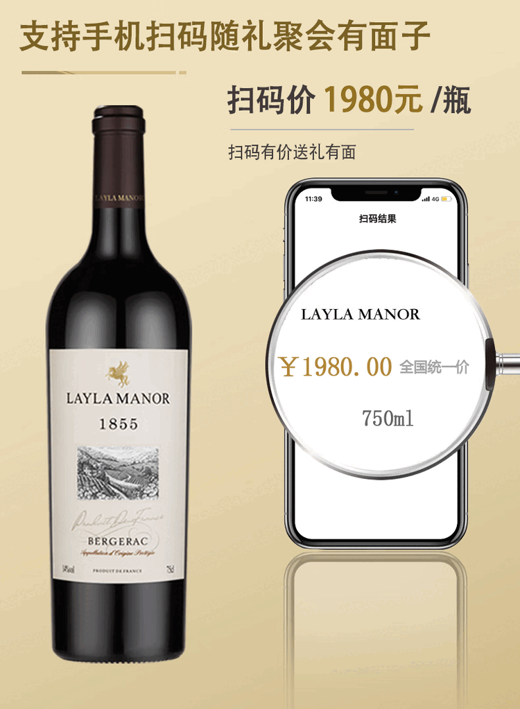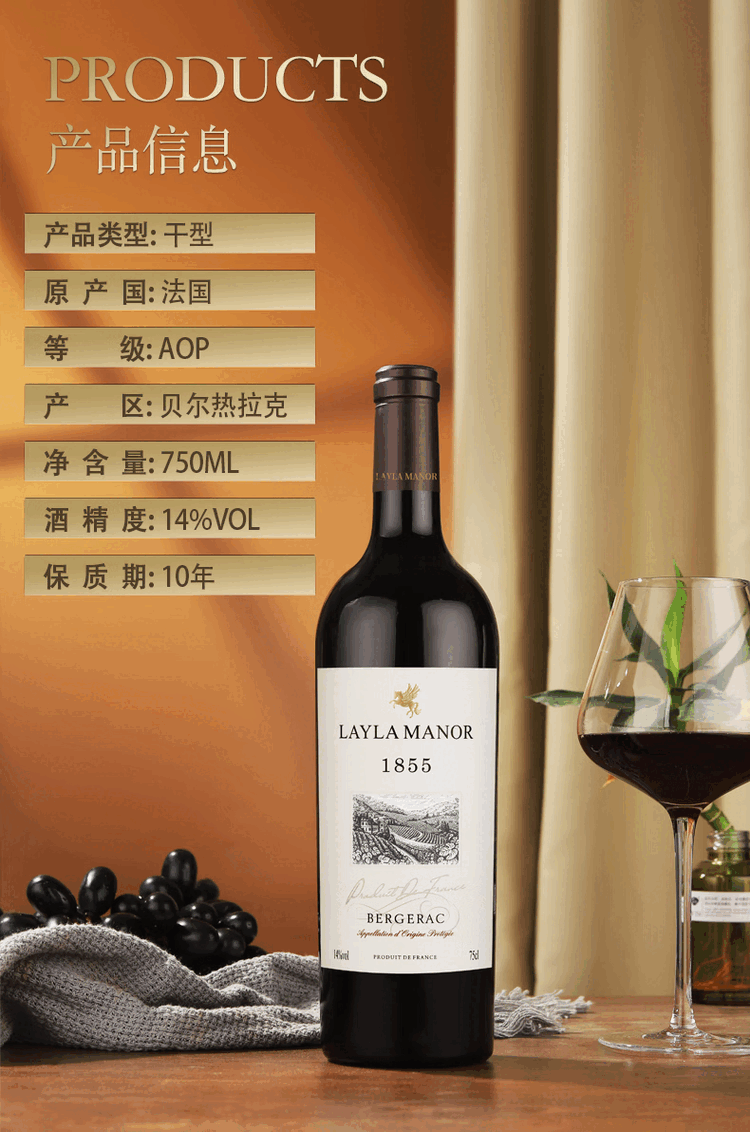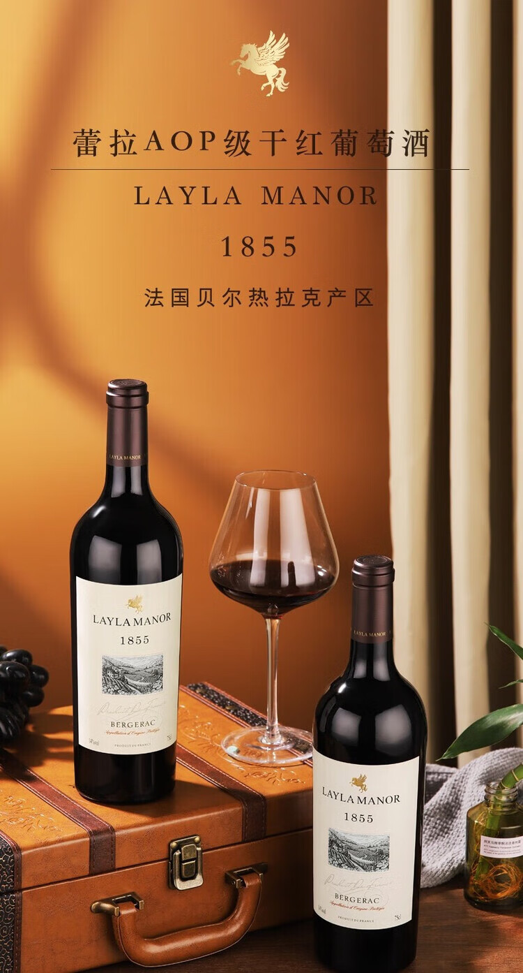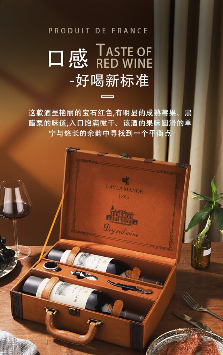 LAYLA法国进口AOP级14度干红葡萄酒皮质礼盒装送礼750mlX两支