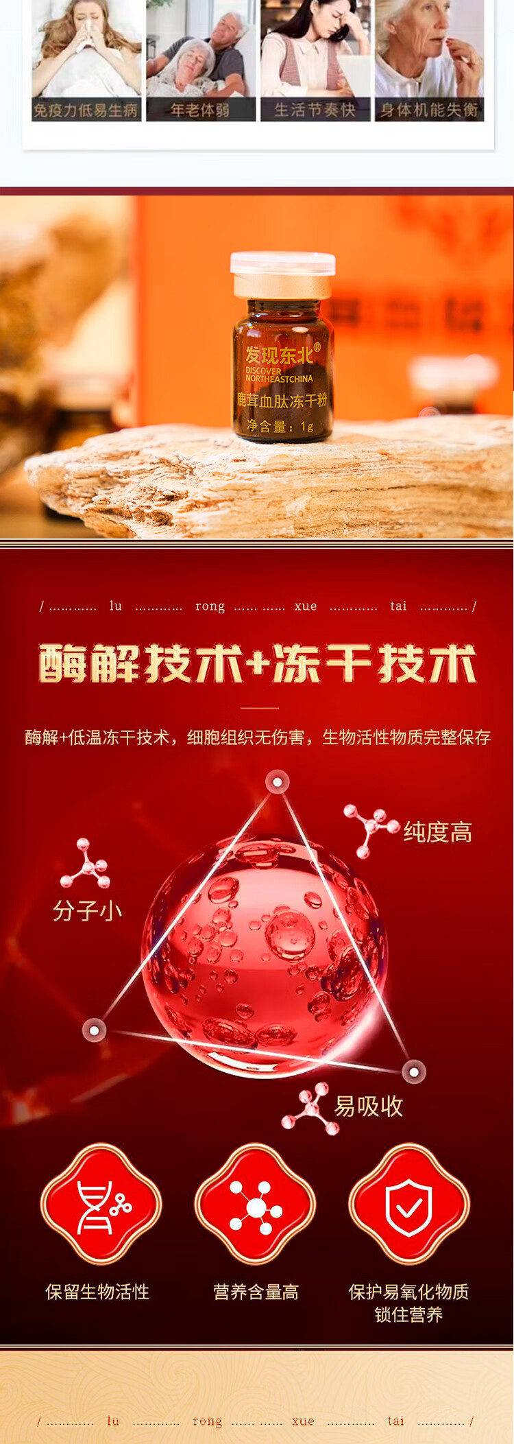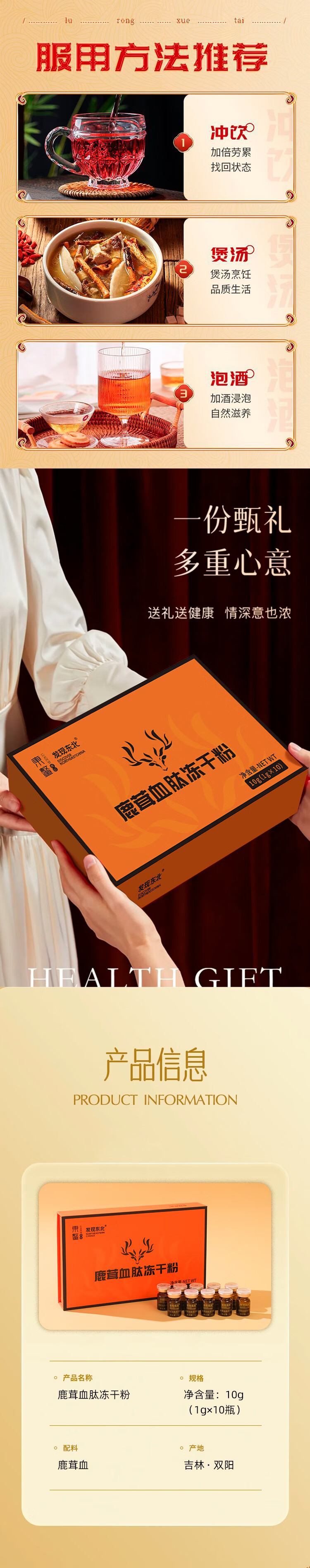 发现东北鹿茸血肽冻干粉 正宗双阳梅花鹿之乡梅花鹿滋补品 1盒鹿茸血肽冻干粉【10瓶/盒】