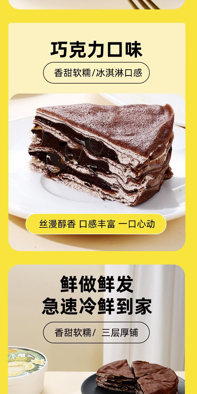 榴食喵猫山王榴莲千层蛋糕小蛋糕千层榴莲蛋糕盒子蛋糕动物奶油西点甜品 巧克力千层400g*1盒