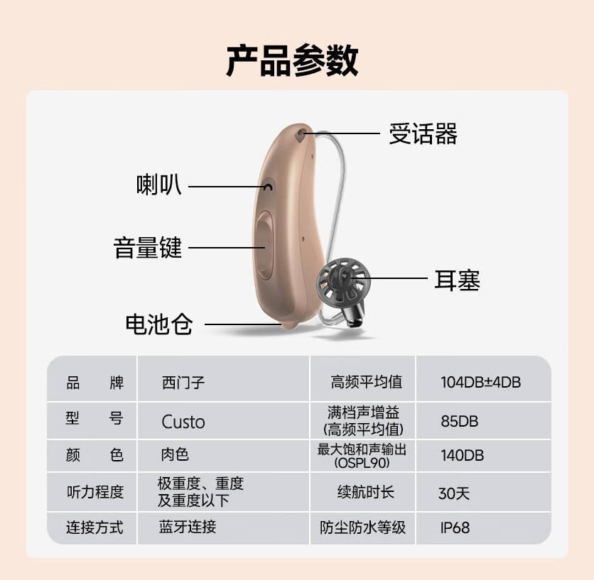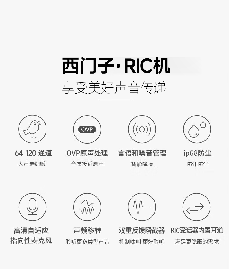 西门子德国进口超小隐形降噪蓝牙助听器RIC老人年轻人耳聋耳背专用Custo 【120通道右耳】手机直连+无线蓝牙+AI智能降噪