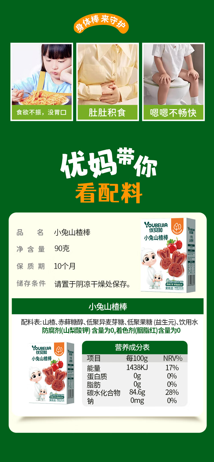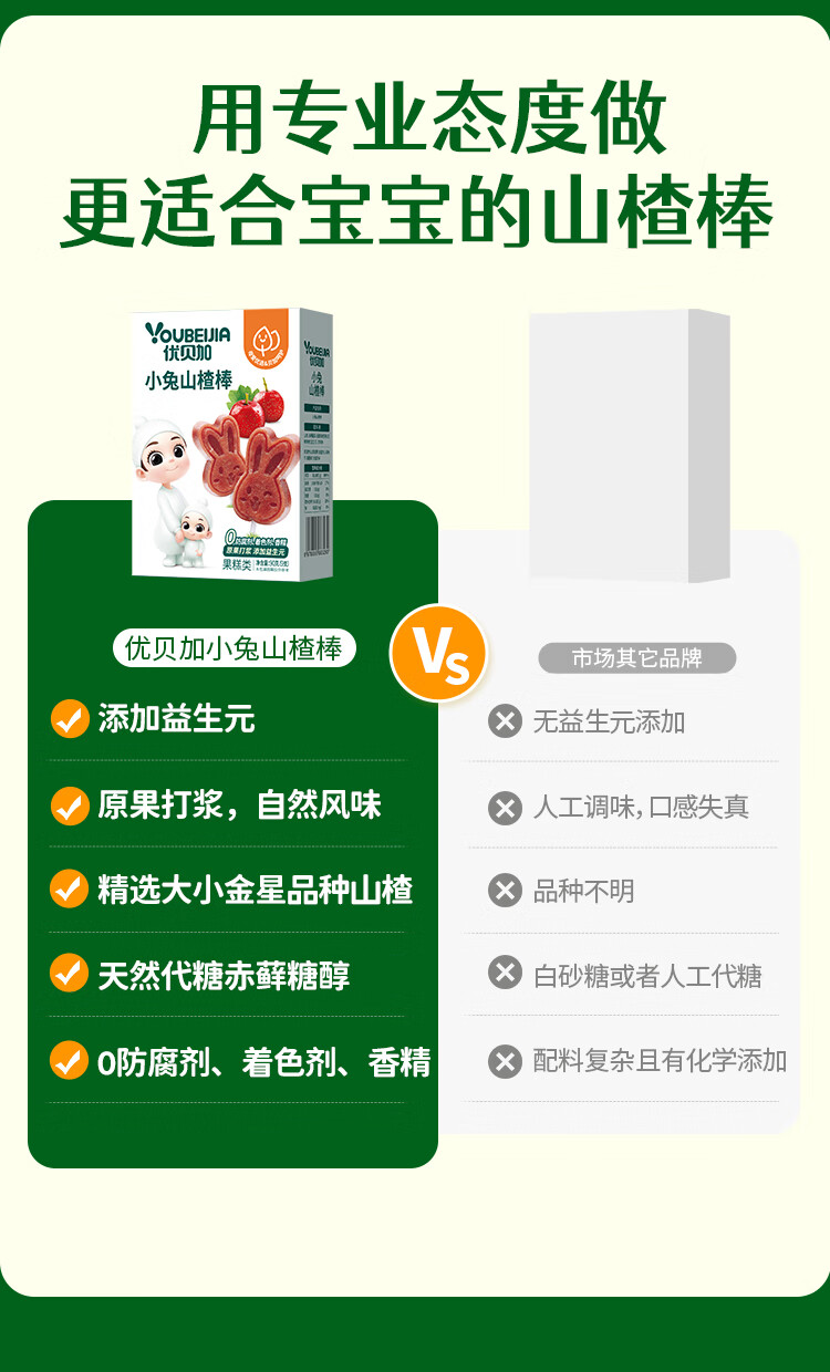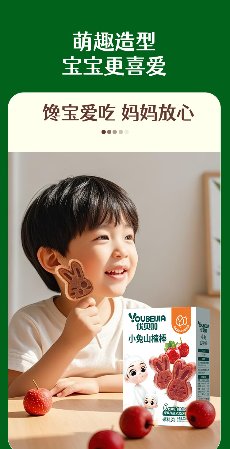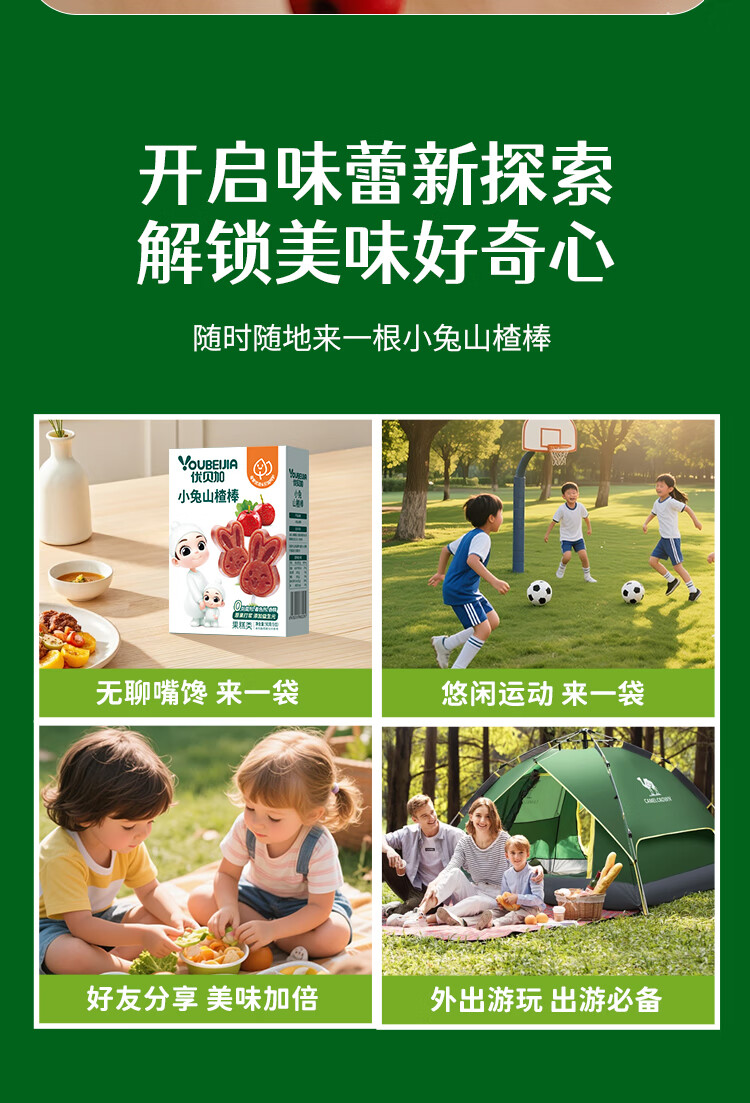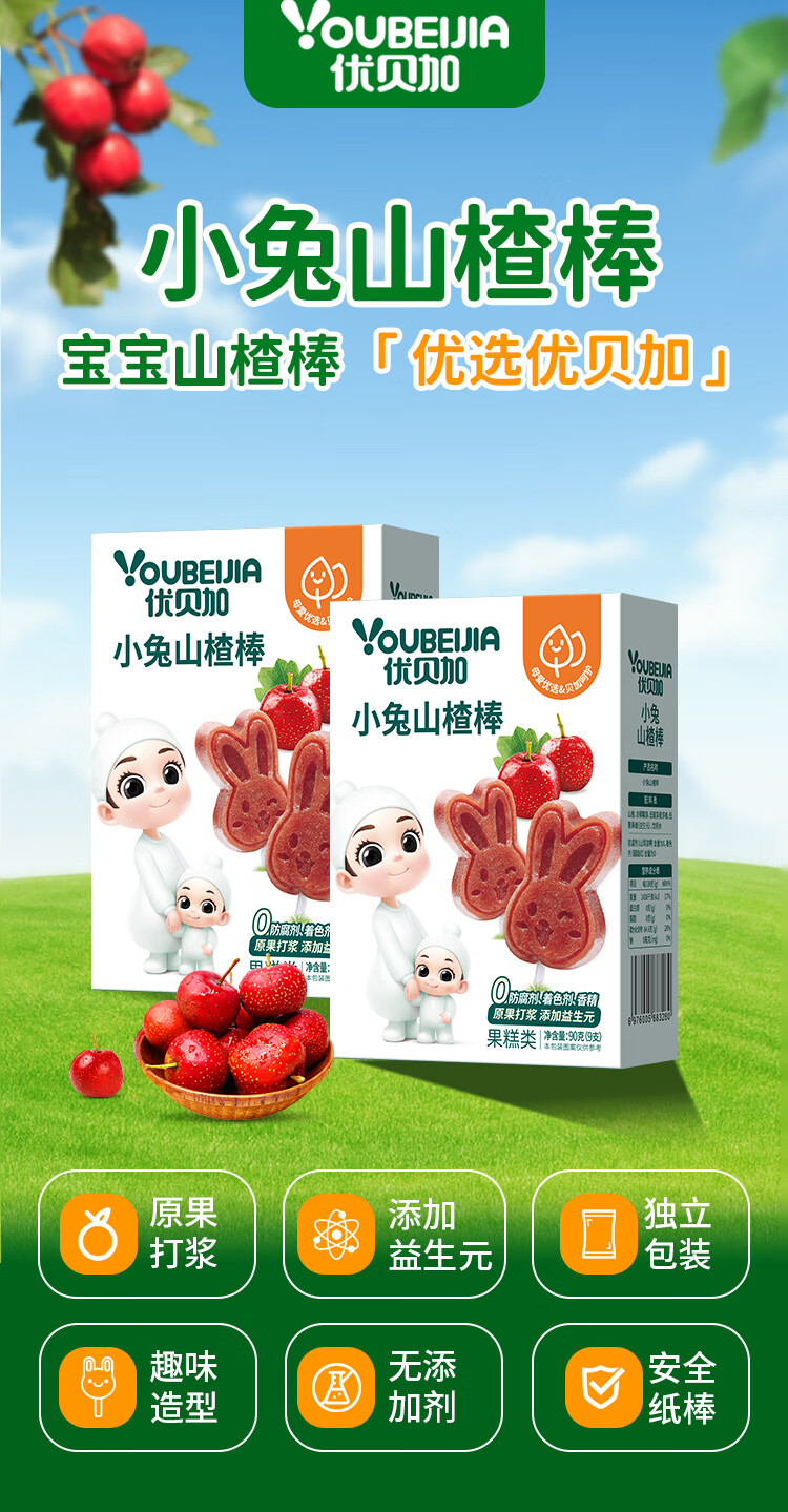 优贝加小兔山楂棒儿童营养开胃零食无添加色素儿童零食健康山楂条水果棒 优贝加山药鸡内金山楂糕*3盒