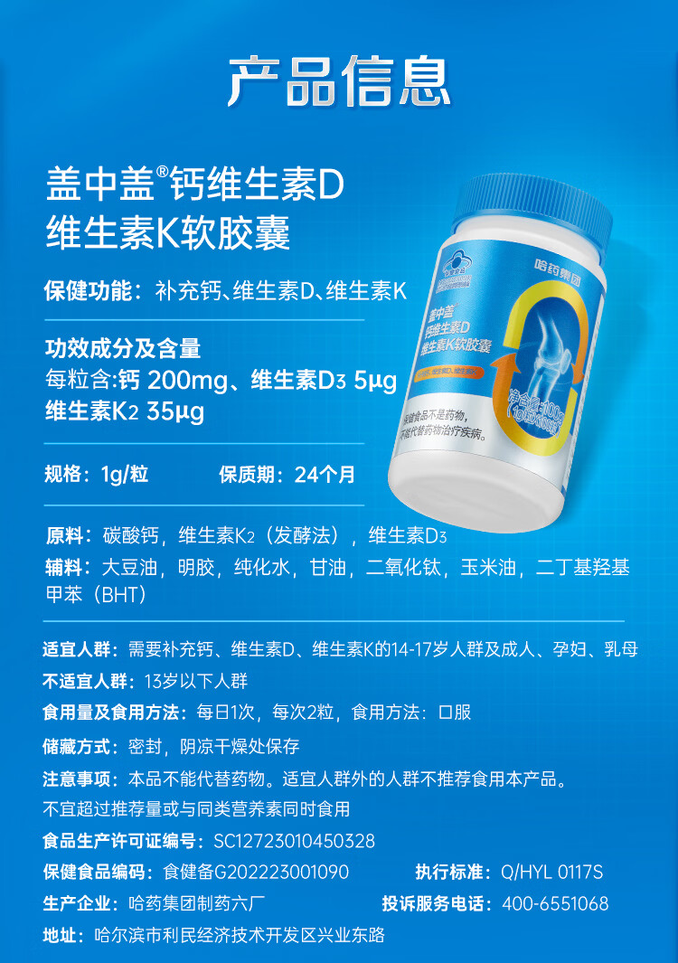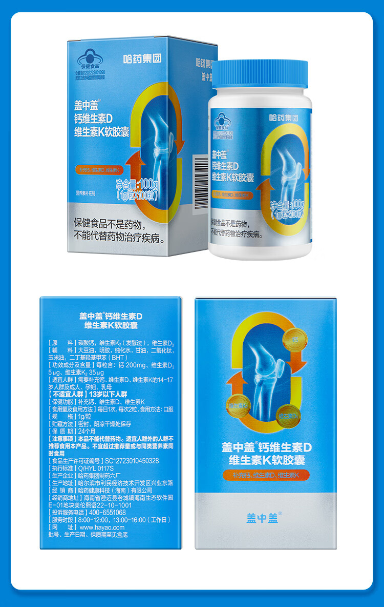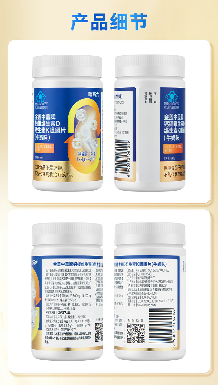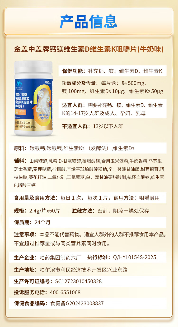哈药盖中盖牌高钙片 成人学生青少年中老年补钙 添加维生素D 【高钙片礼盒】 110片*3瓶