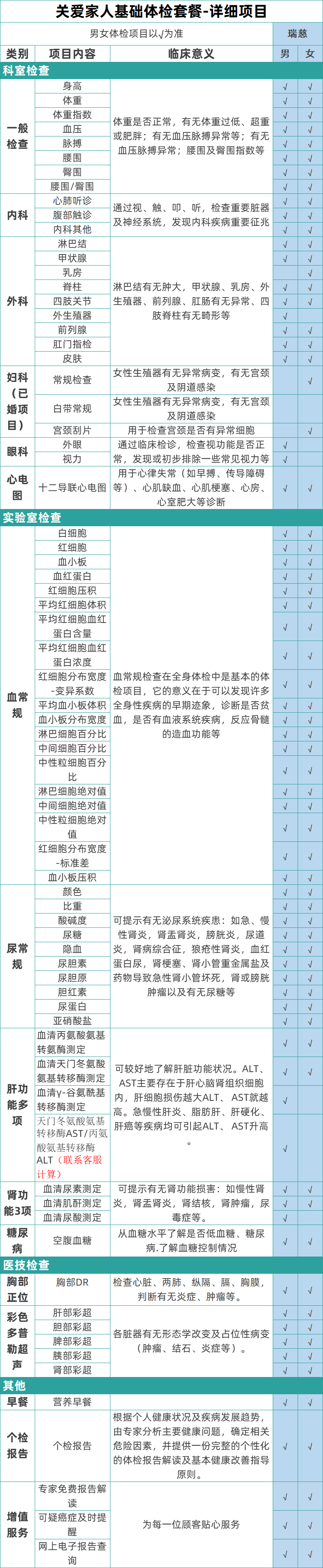 美年大健康瑞慈体检女性专属体检套餐体检妇科乳腺宫颈套餐【电子卡券发放】 关爱家人-基础款【瑞慈】