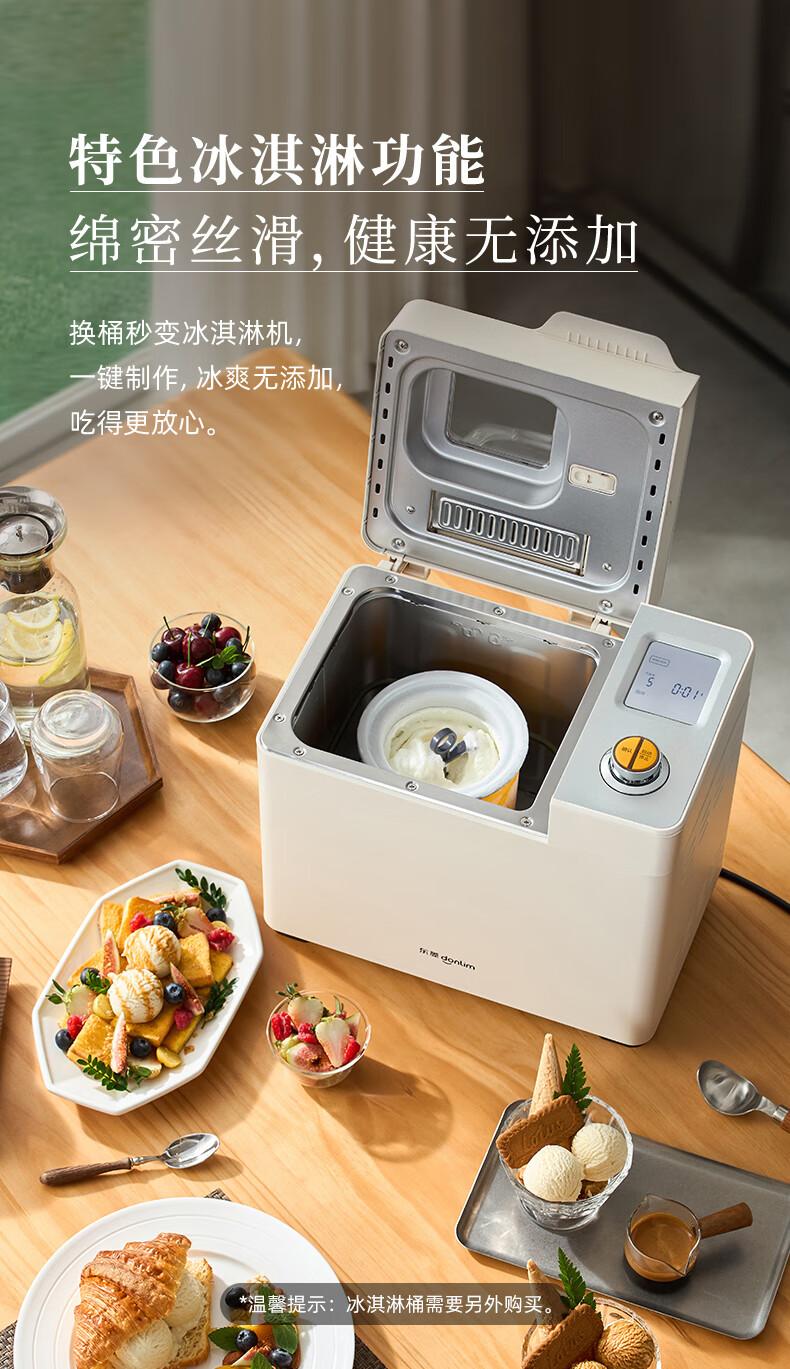 东菱(Donlim)家用全自动无糖面包机 大容量 智能双撒大功率无糖轻享可预约 多功能和面机新年礼物DL-1352白