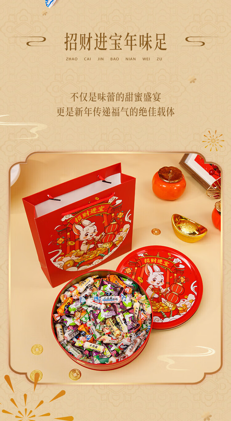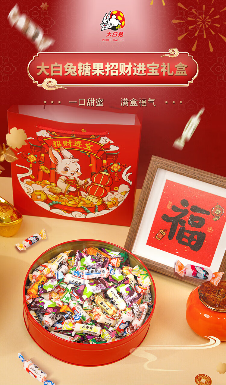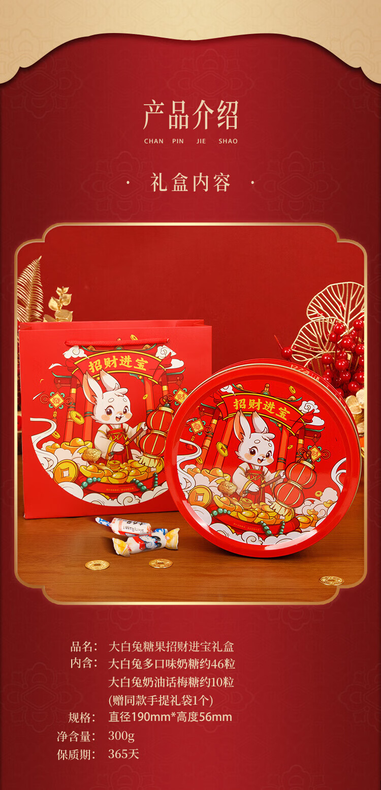 大白兔奶糖话梅糖礼盒 【招财进宝】多口味300g 春节新年礼物送亲友员工