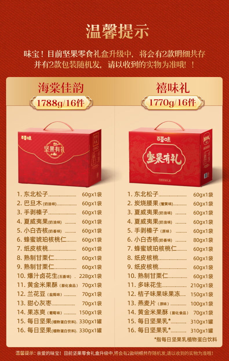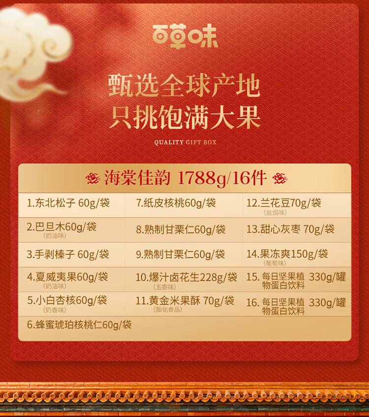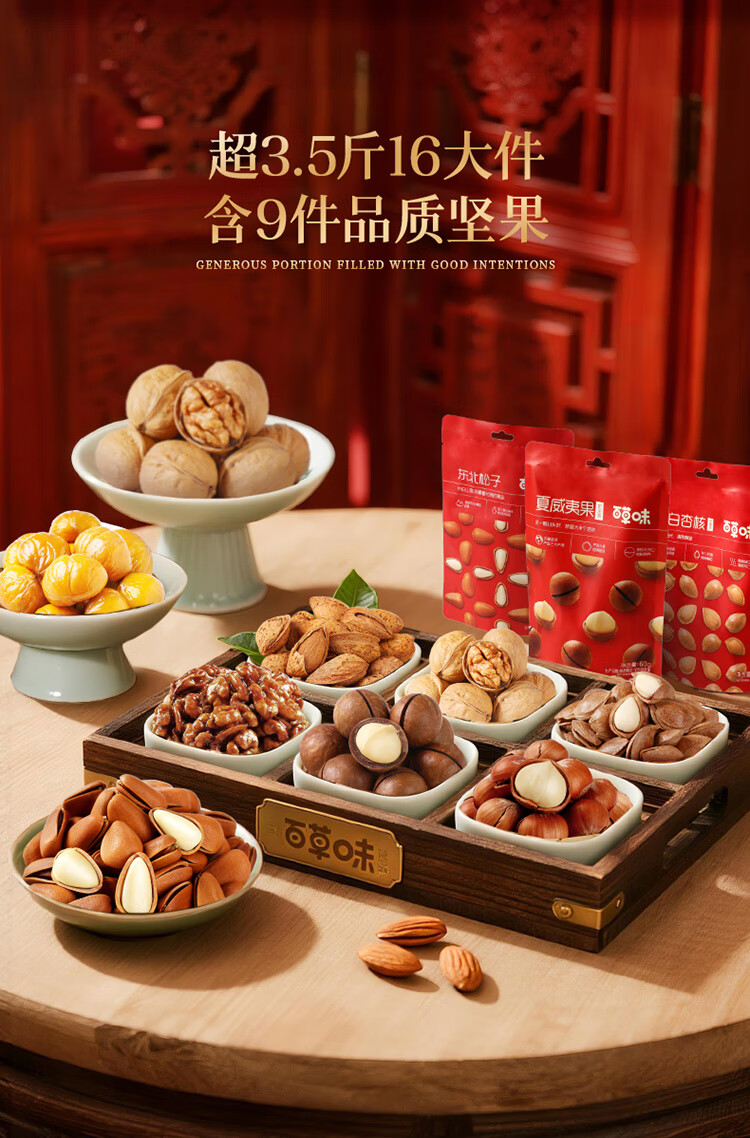 百草味坚果礼盒1788g/16件 含东北松子夏威夷果榛子巴旦木年货团购送礼