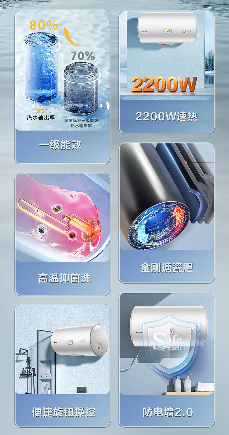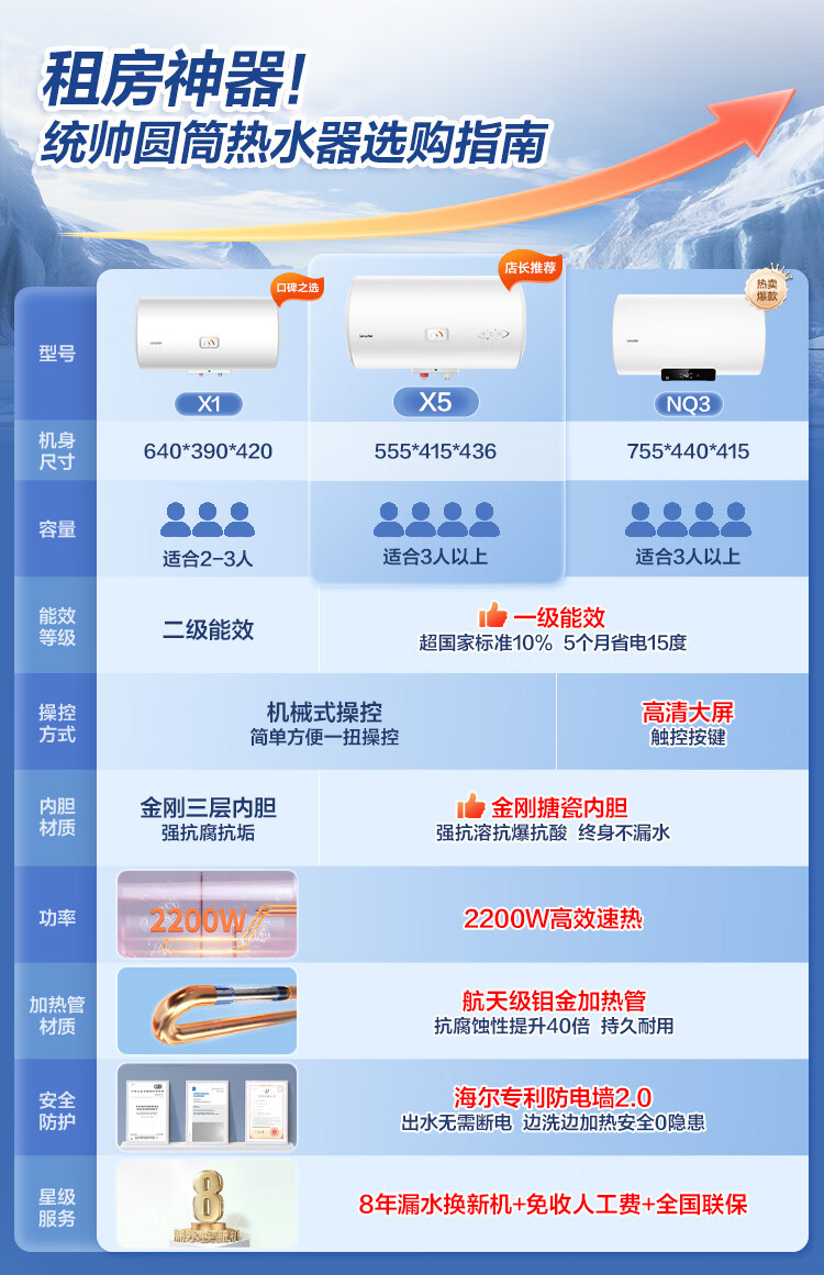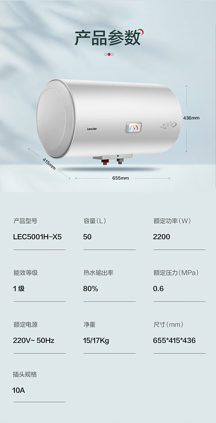海尔出品统帅50升电热水器京东自营上门安装家用储水式 2200W节能速热国家补贴15%一级能效LEC5001H-X5
