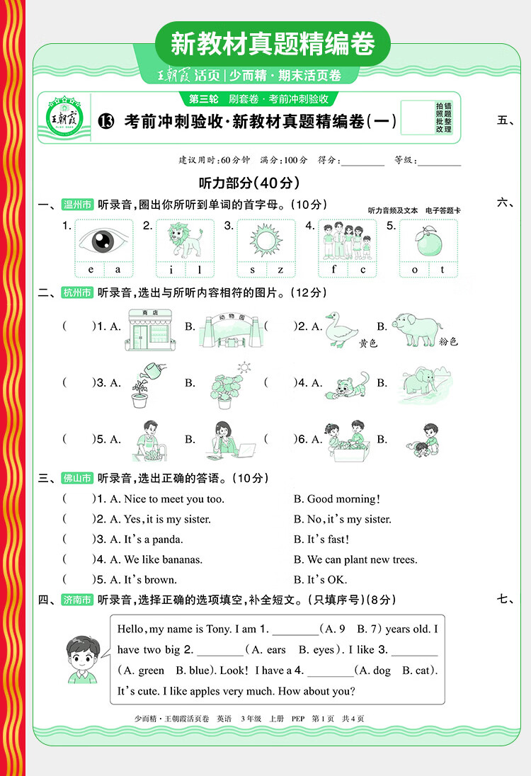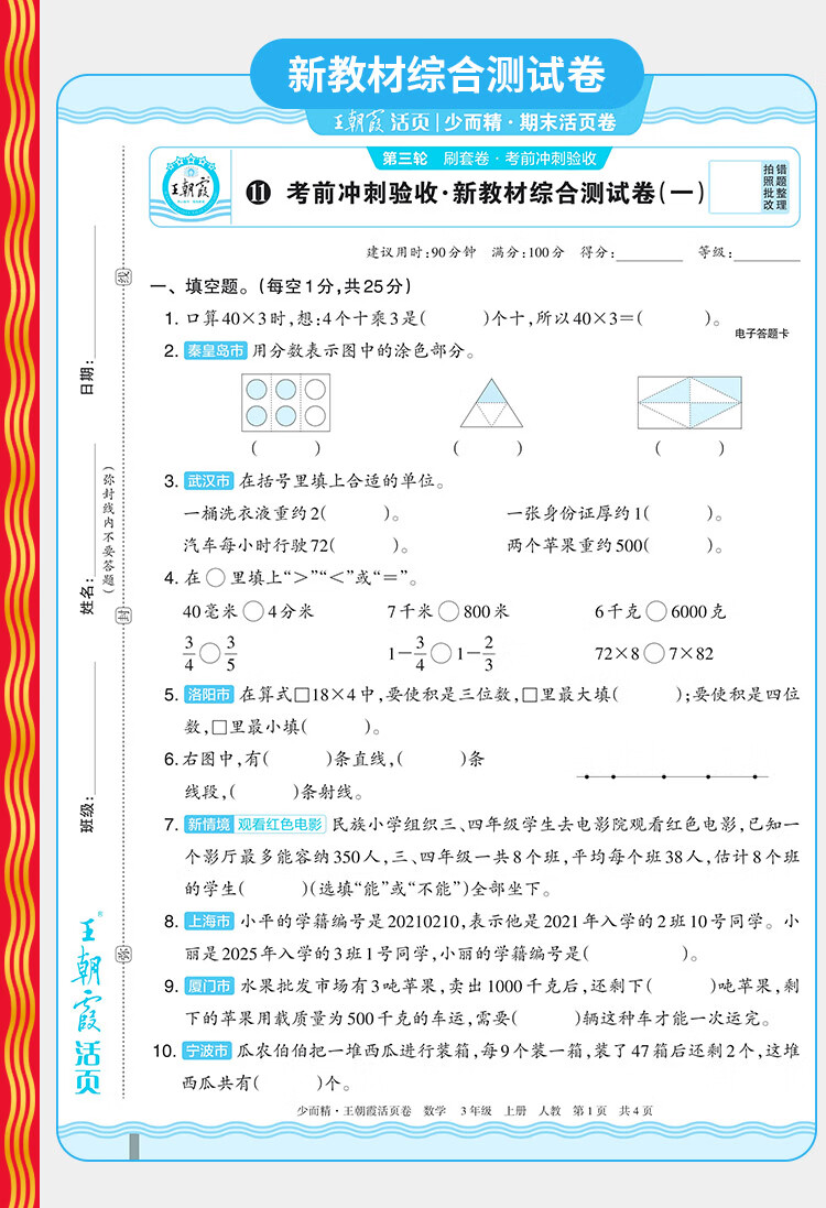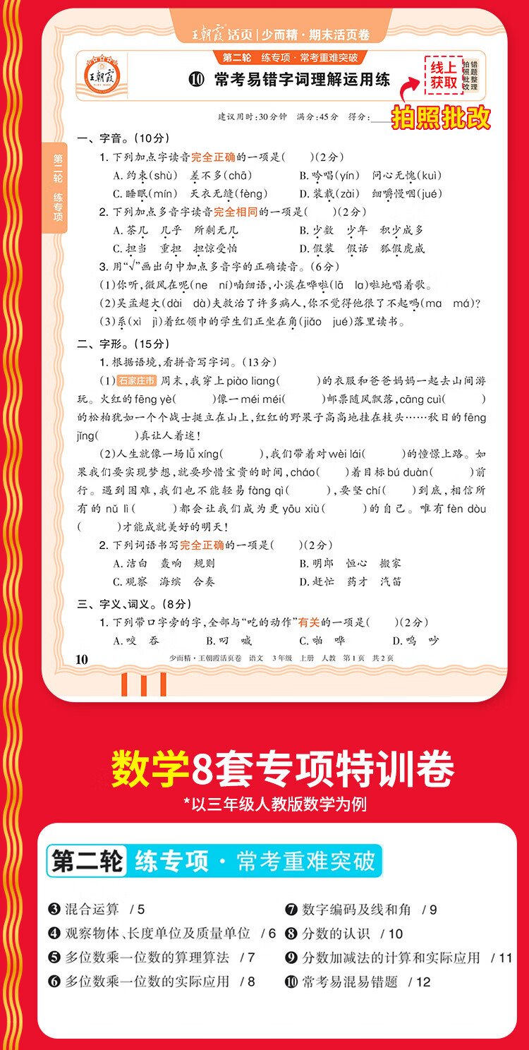 2025秋季上册王朝霞试卷期末活页卷三四五六年级一二年级期末试卷精选上册人教北师苏教版语文数学英语冲刺100分期末考试随堂练 一年级上册 语文【人教版】