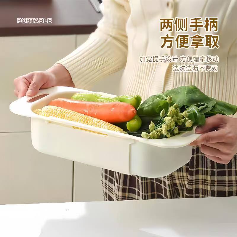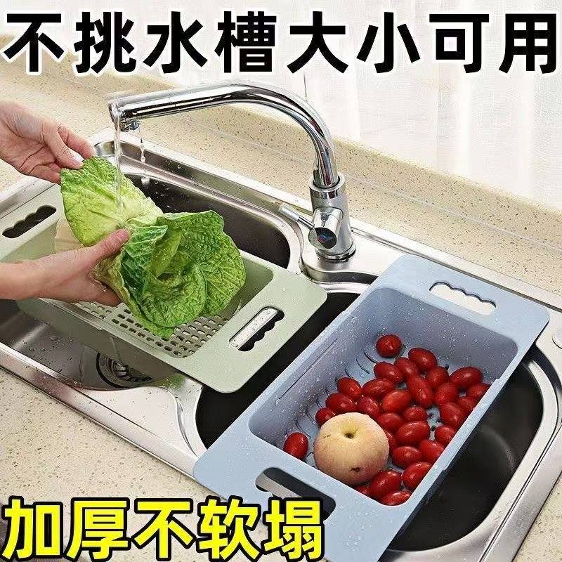 厨房伸缩收纳架双层沥水篮家用厨房水槽收纳篮 可伸缩沥水篮【随机色1个】