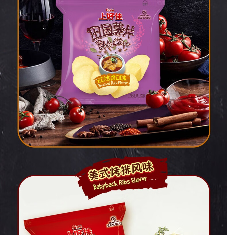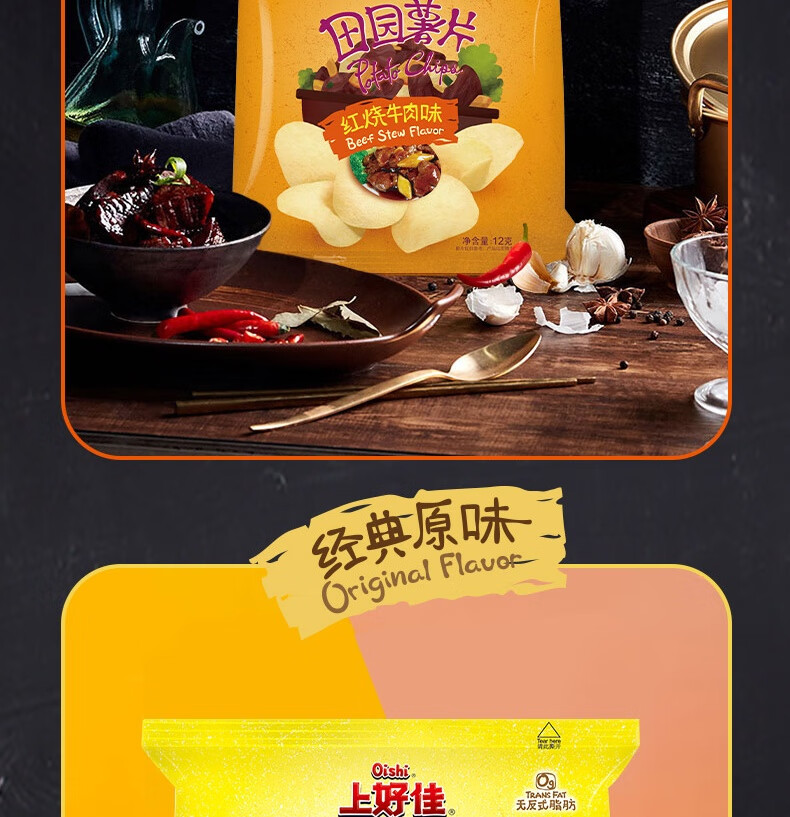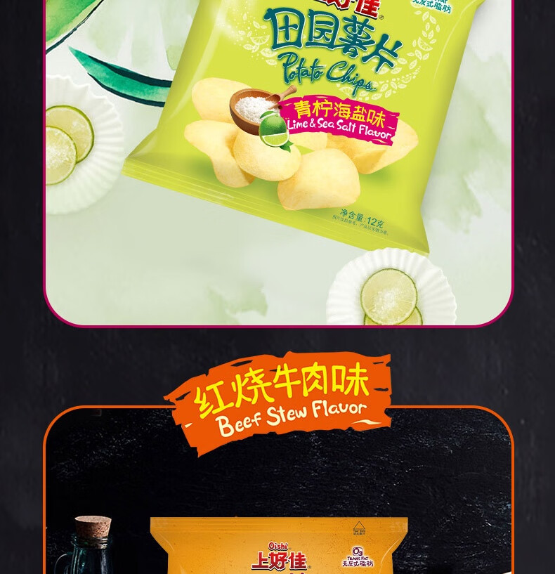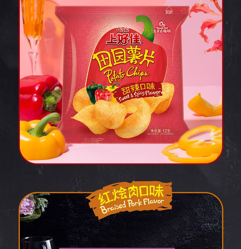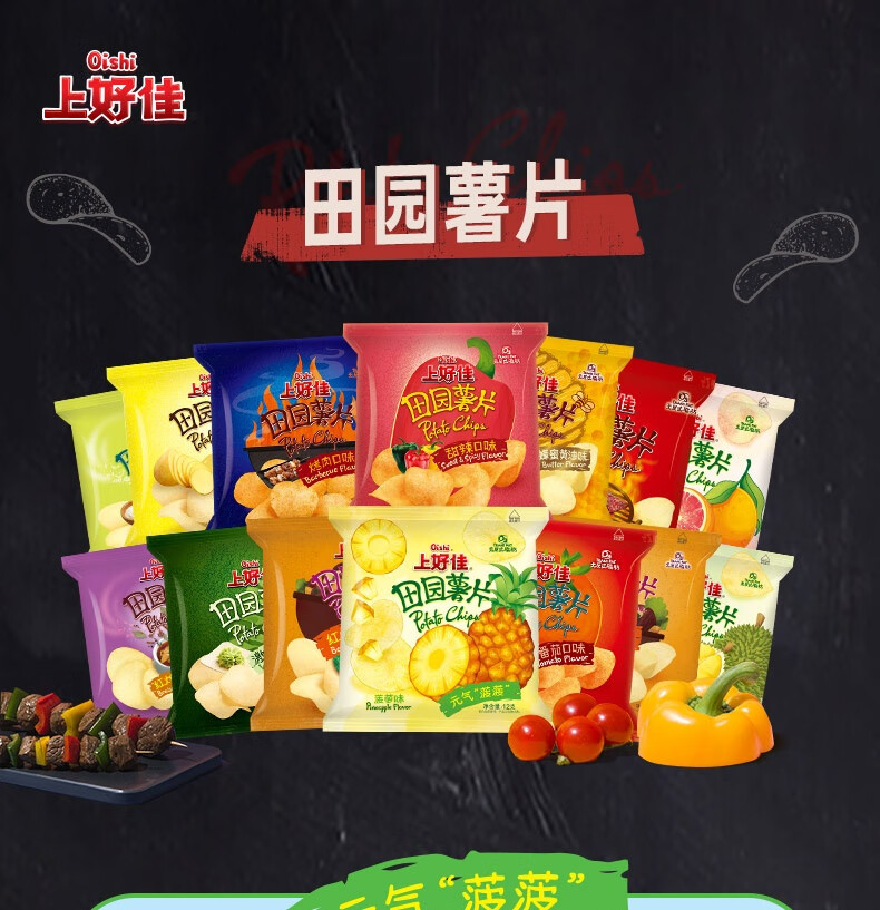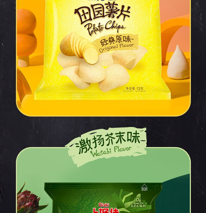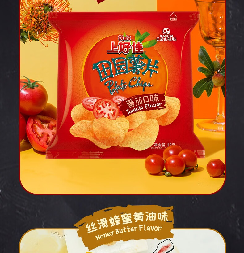 上好佳田园薯片办公室零食小零食 随机口味 12g*25包(5种口味随机)