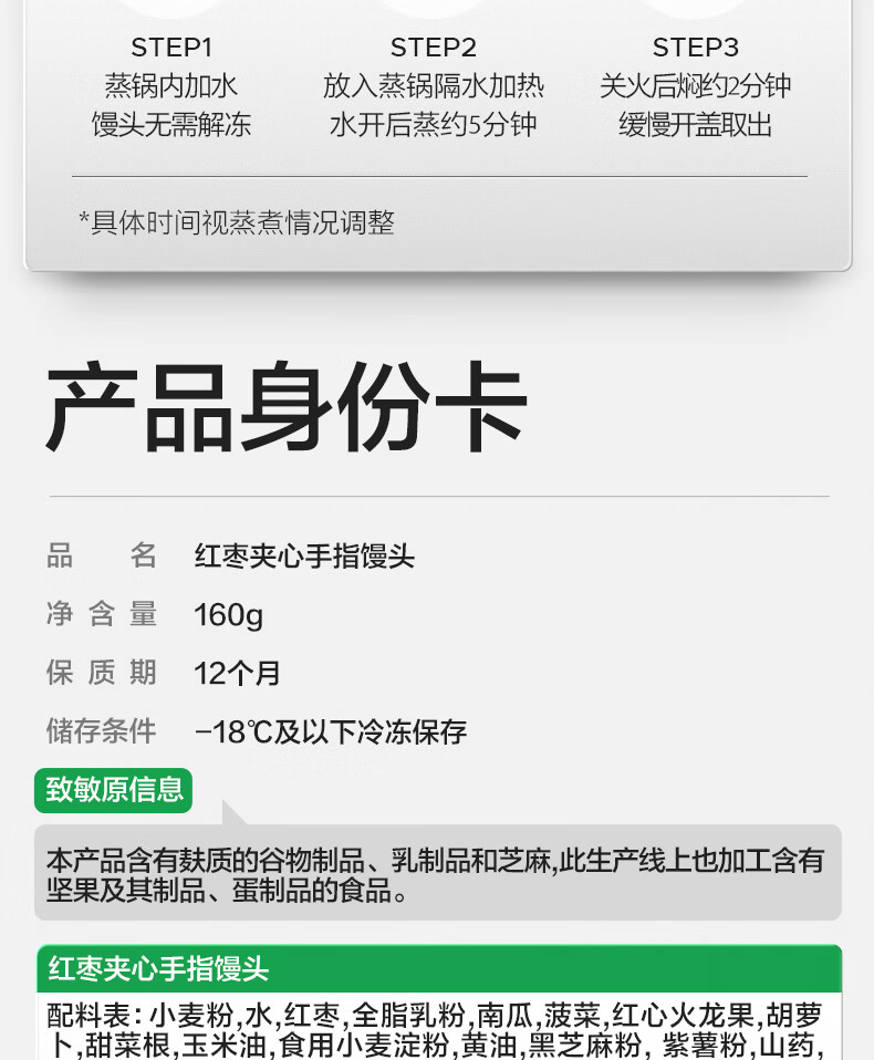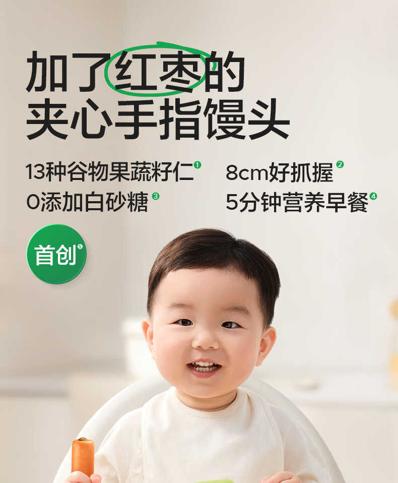 宝宝馋了红枣夹心手指馒头160g儿童早餐半成品无添加糖送宝宝婴幼儿辅食谱