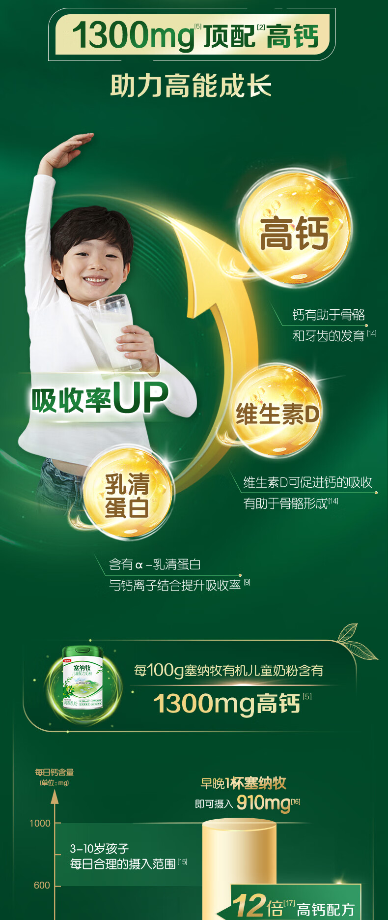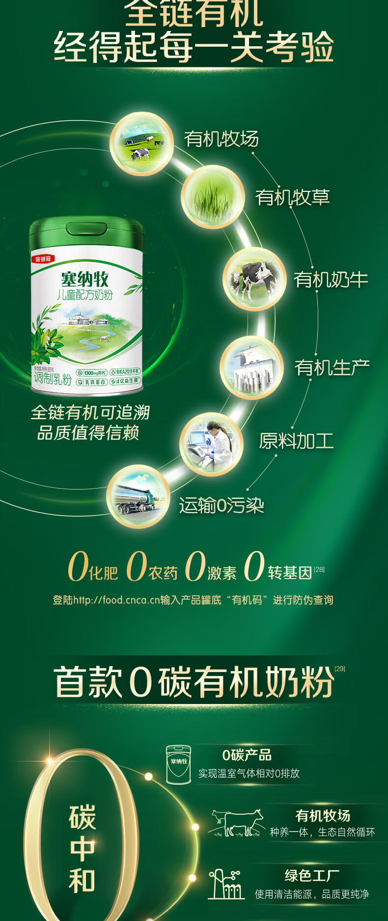 伊利金领冠塞纳牧【首款HMO】有机A2β-酪蛋白奶粉4段(3-6岁)800g