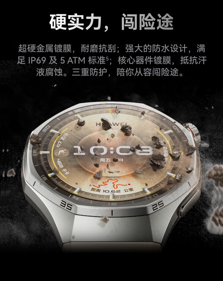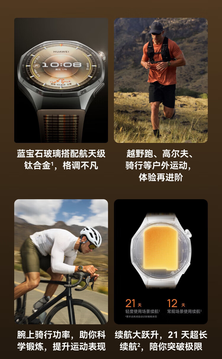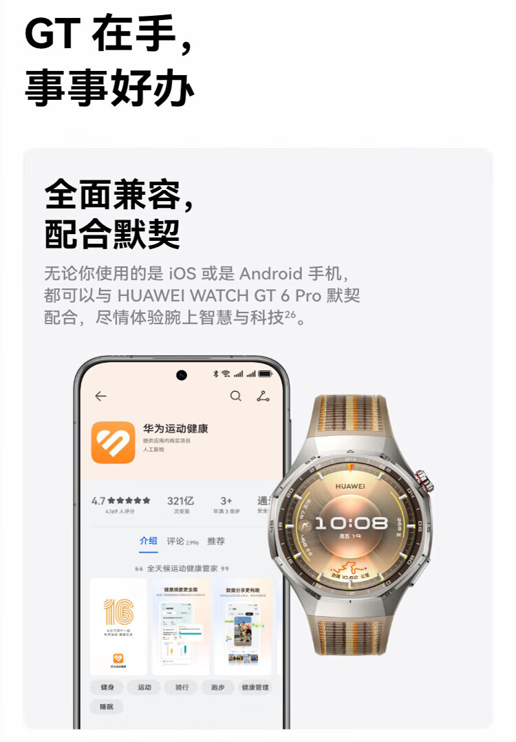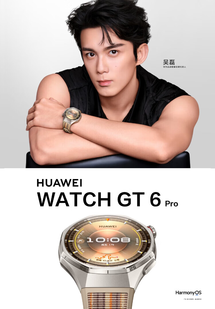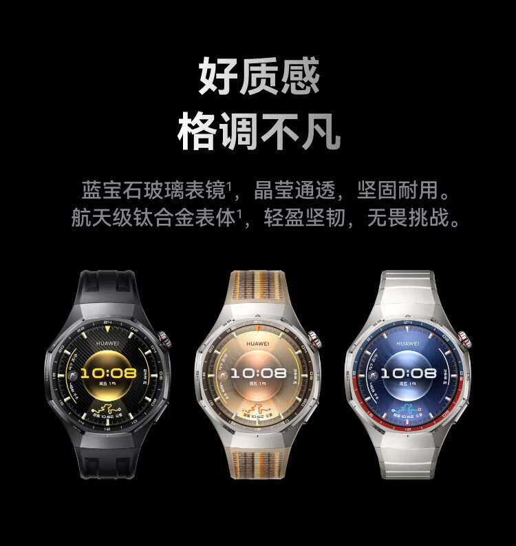 华为(HUAWEI)手表WATCH GT 6 Pro 运动智能两周续航蓝牙通话体温血氧心率监测健康蓝宝石玻璃&钛合金GT5Pro升级 46mm曜石黑-黑氟橡胶表带 腕围210-210mm