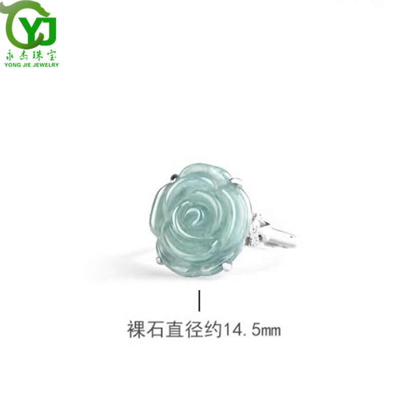 永杰原创【爱情】A货翡翠蓝水玫瑰花戒指冰种指环女戒礼物带证书