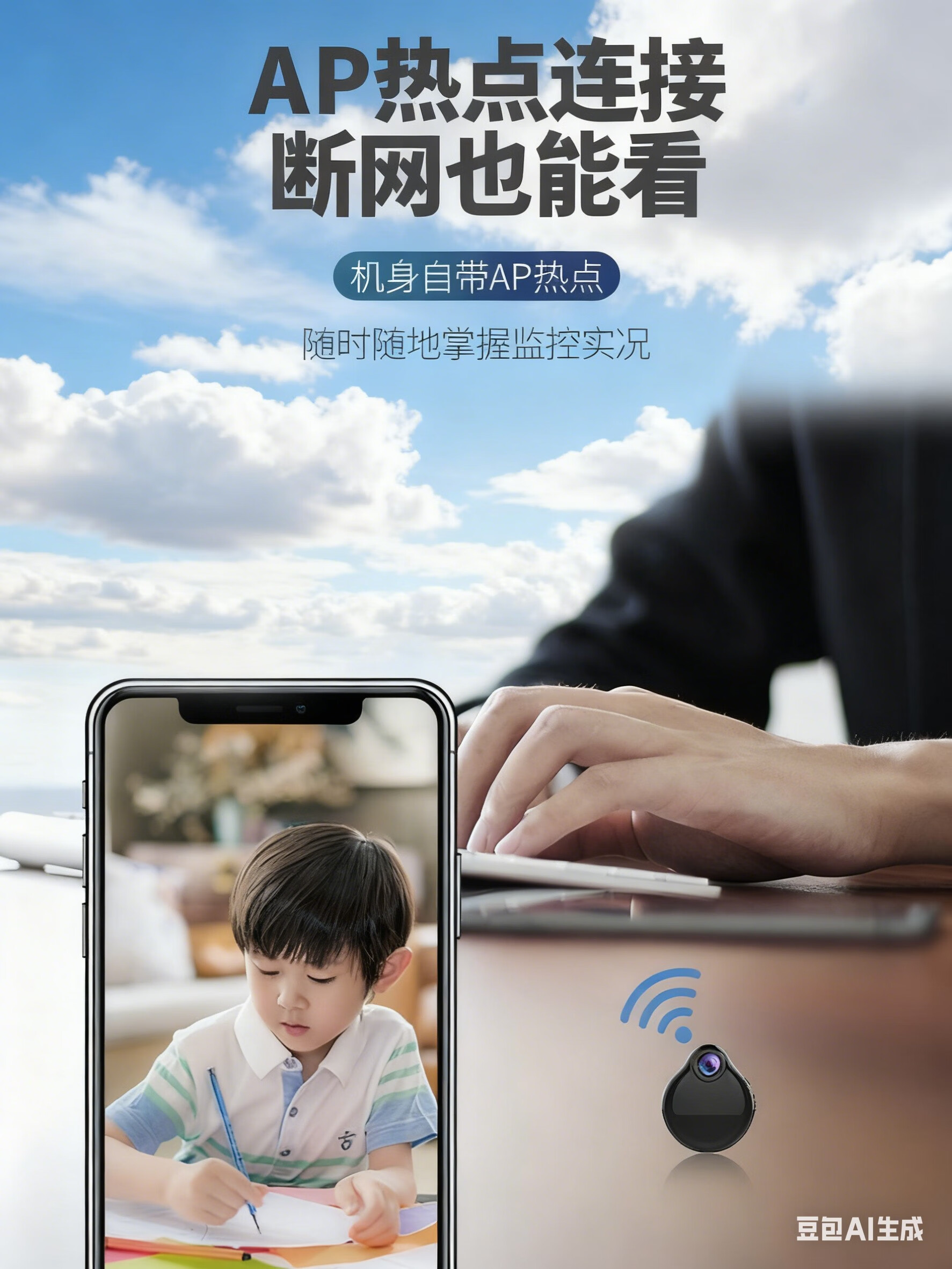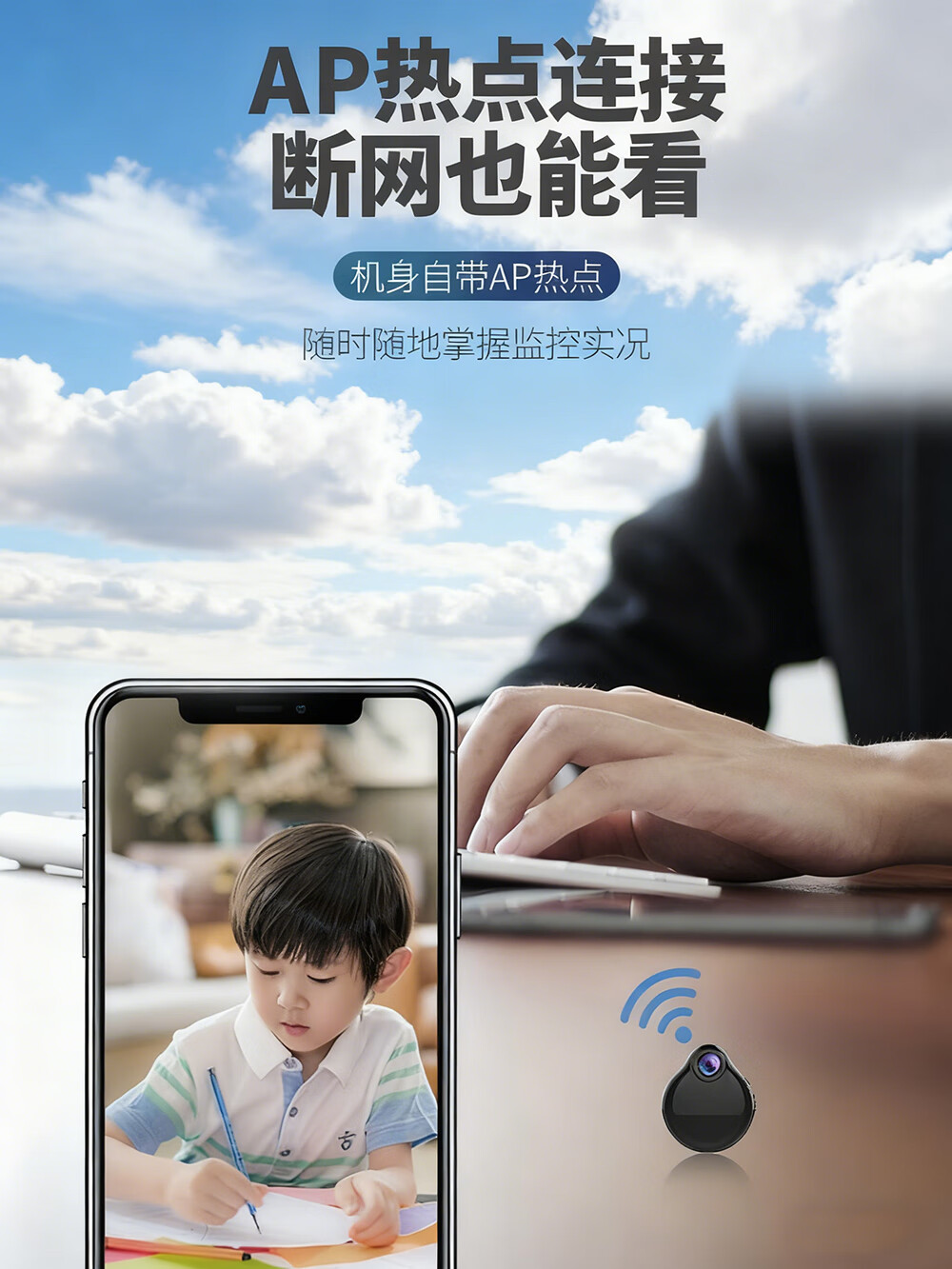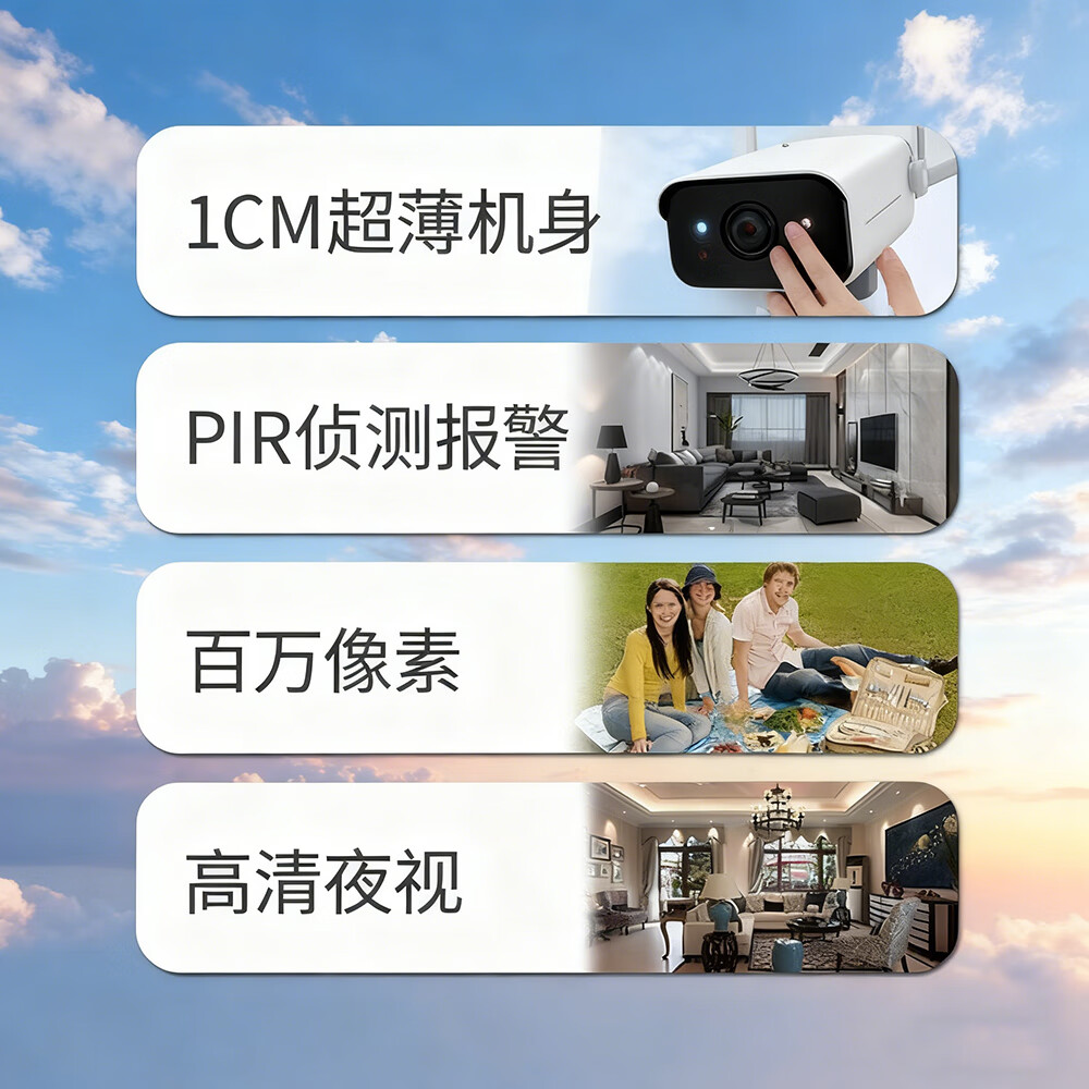 监控摄像头家用无线摄像机免插电夜视高清手机远程室内外摄影头 小巧4g版:无网络可远程(16G)