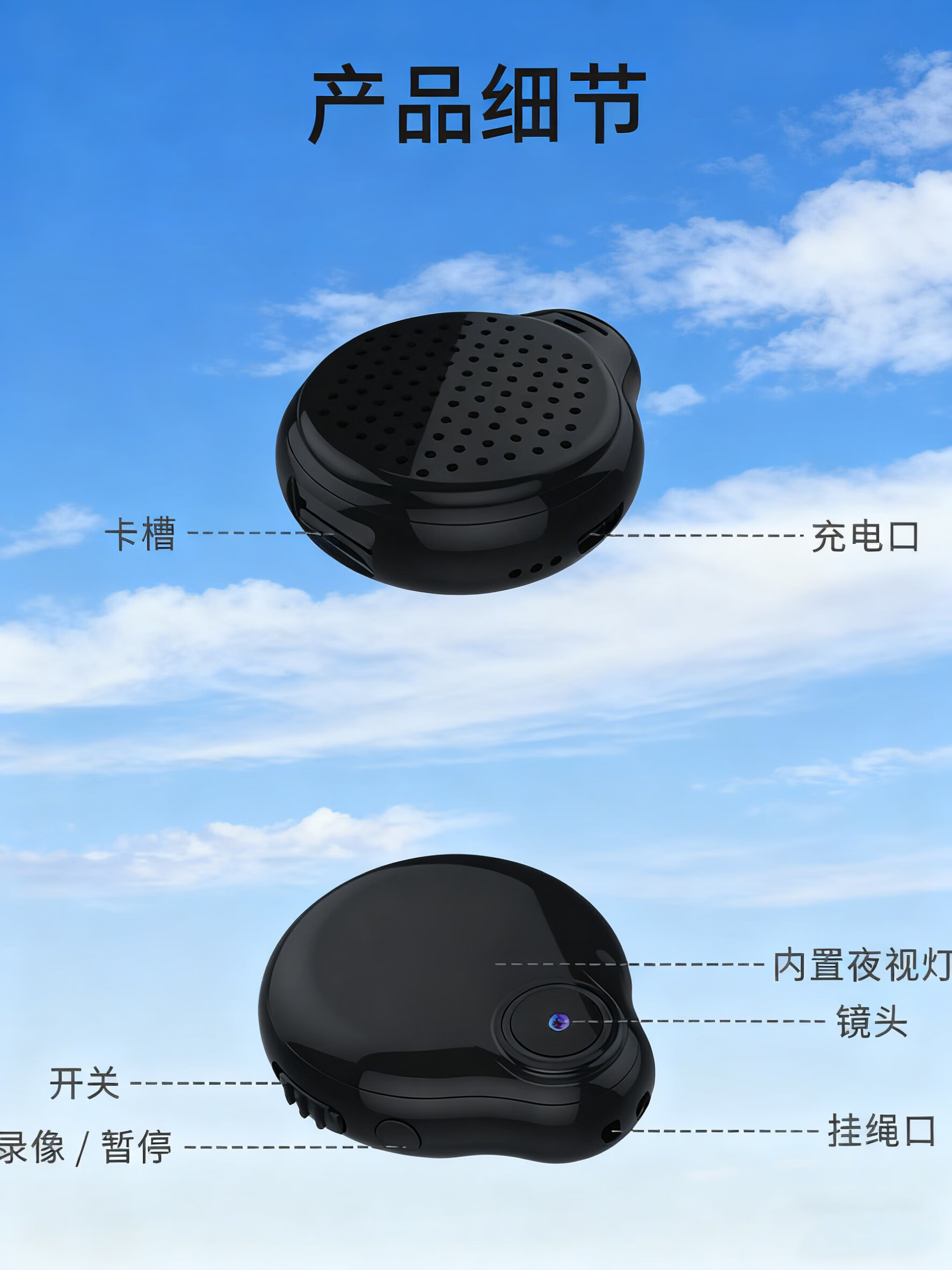 九目拇指运动相机 迷你随身超清运动防抖智能遥控骑行Vlog会议记录行车记录仪长续航数码口袋摄像机 星耀黑超清长续航升级版标准套装 2025新品上市 32G