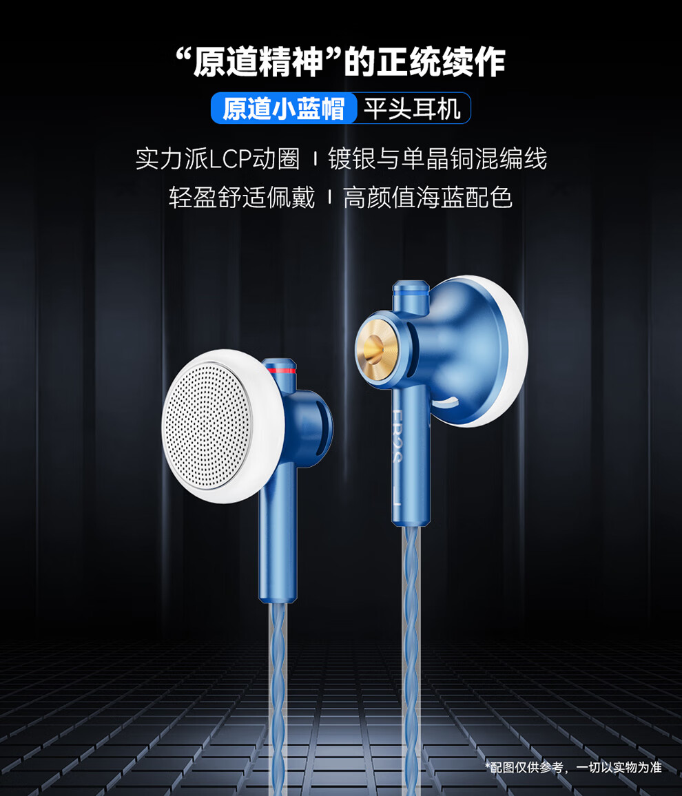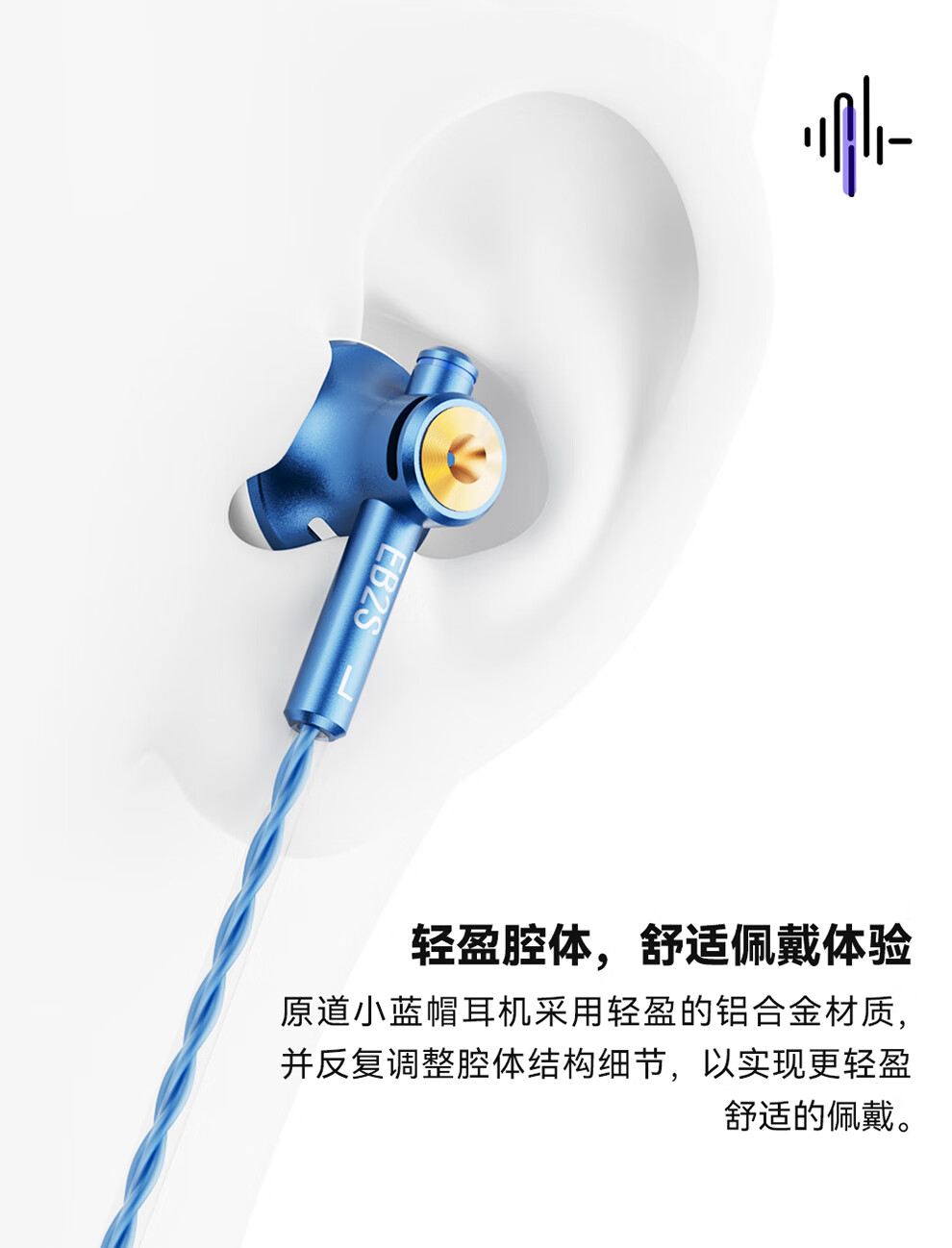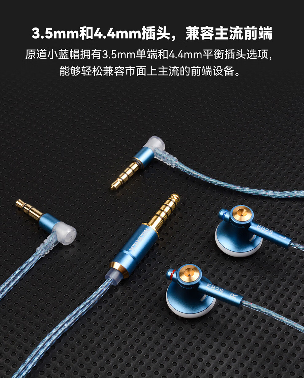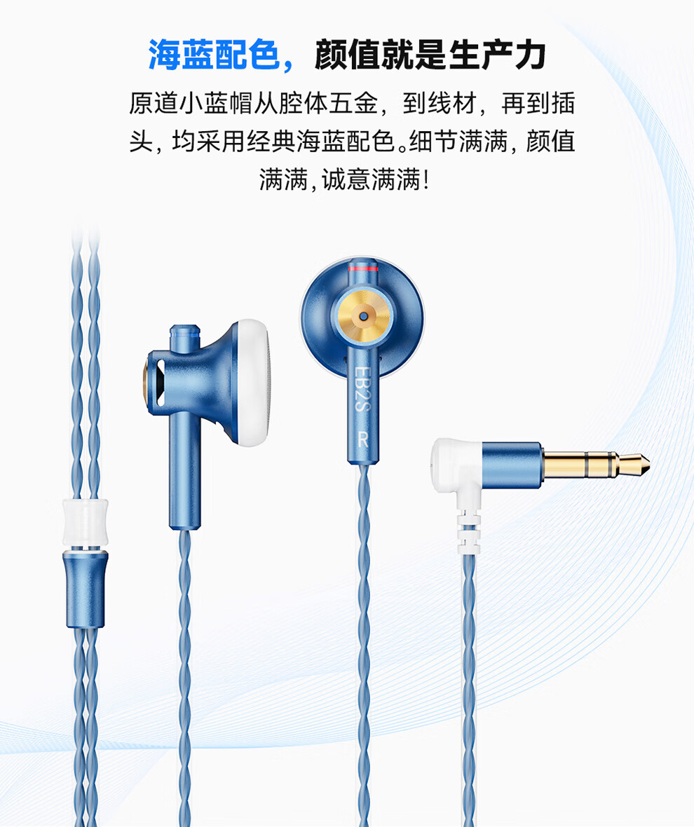 原道-原道小蓝帽EB2S Pro平头式有线耳机升级版二次元HiFi高音质耳塞 原道小蓝帽】3.5无麦+NK1小尾巴