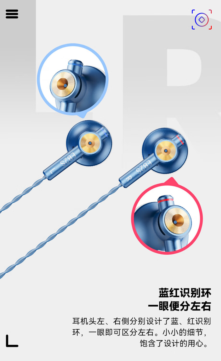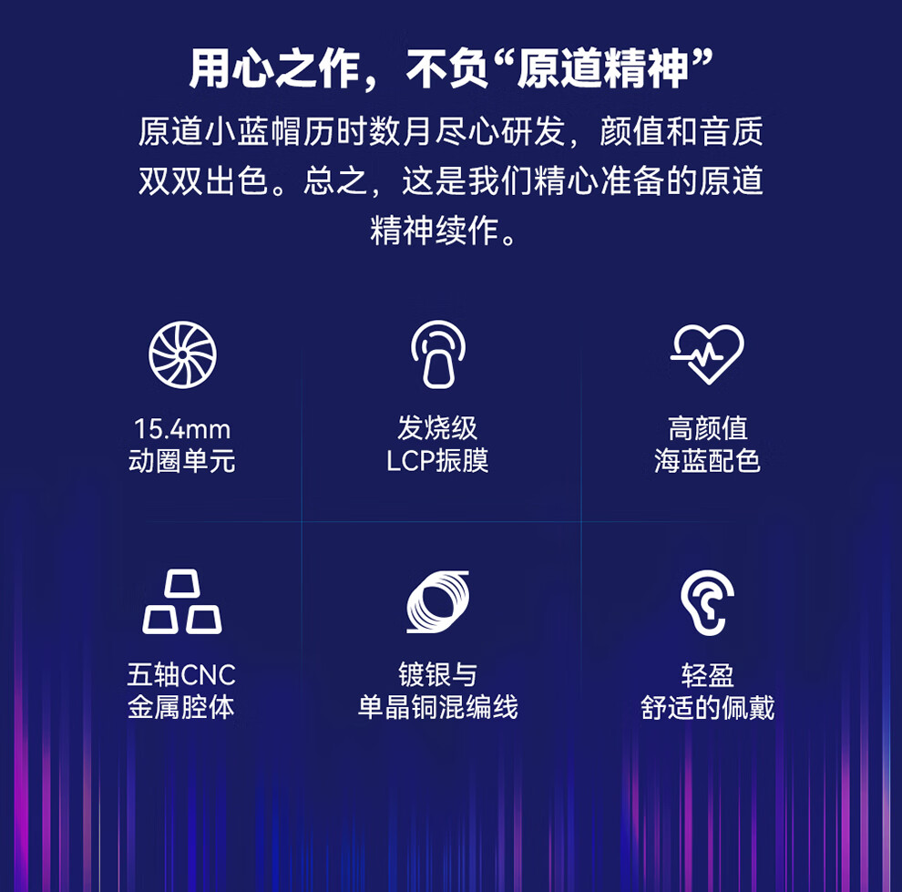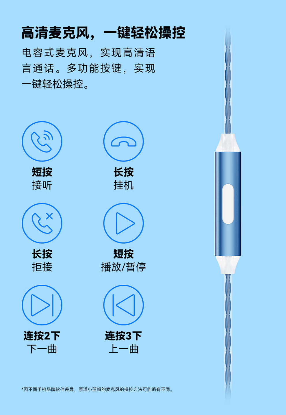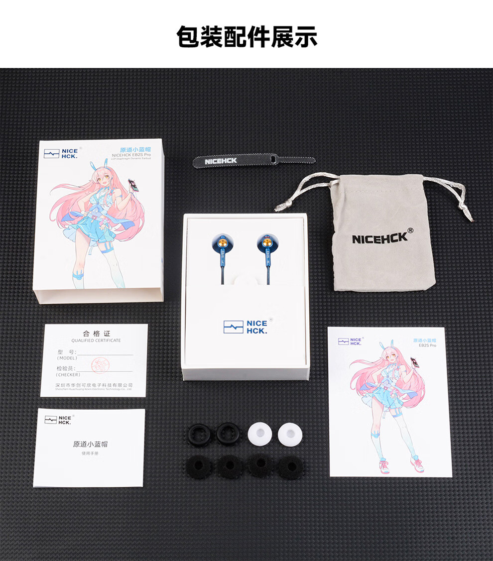 原道-原道小蓝帽EB2S Pro平头式有线耳机升级版二次元HiFi高音质耳塞 原道小蓝帽】3.5无麦+NK1小尾巴
