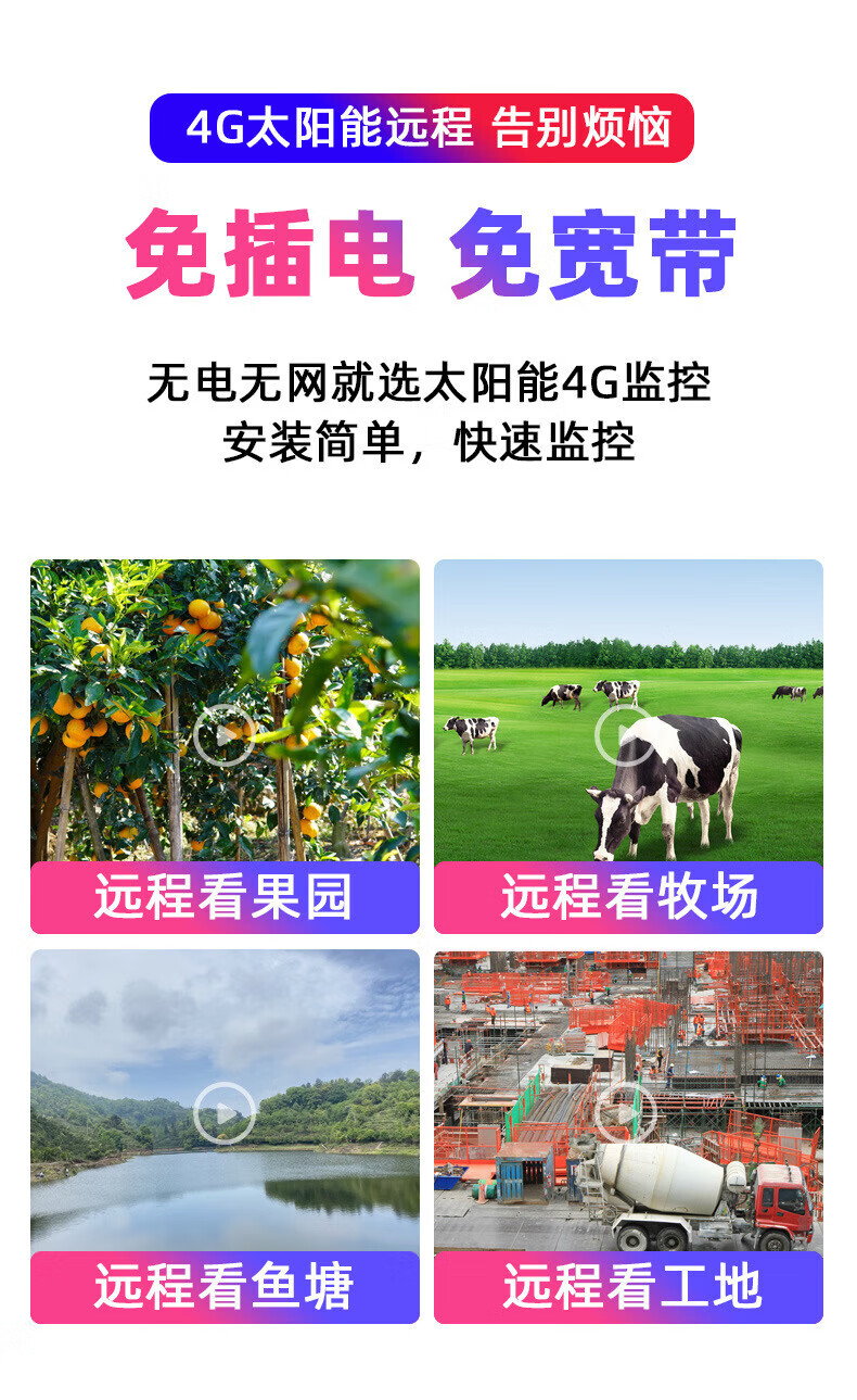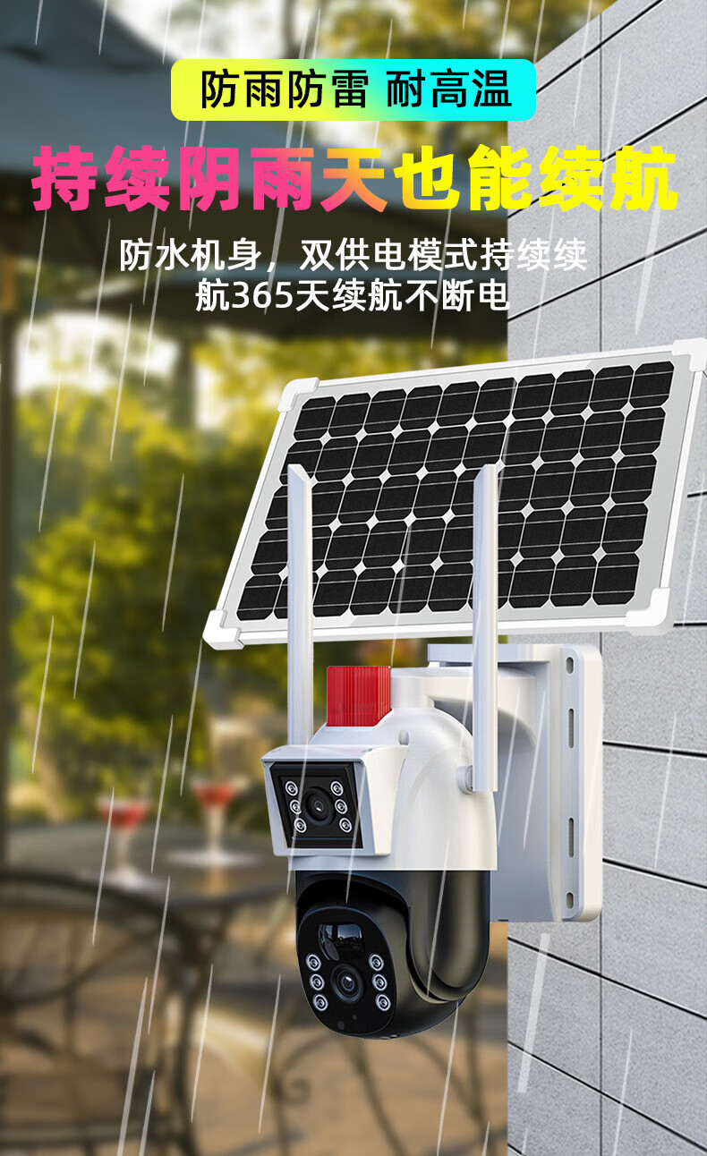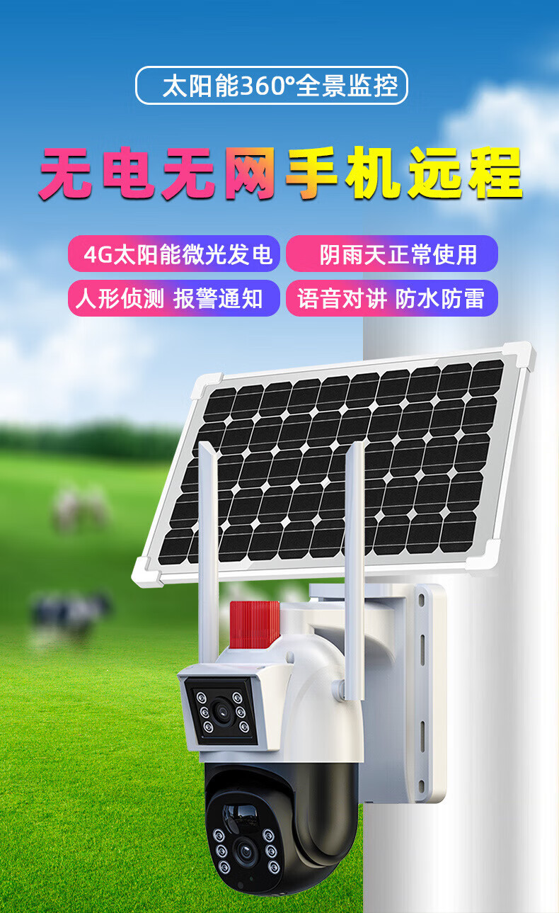 赛乐透农村大门口摄像头太阳能监控户外摄像头农村野外监控摄像头农村野外无电无网厂家直360室外摄像头 4G太阳能三画面监控+99年流量