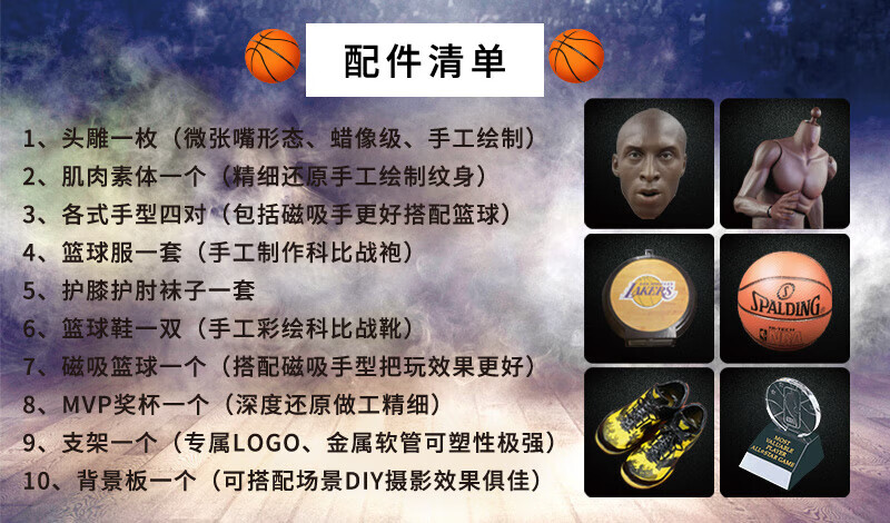 BILLY RICE1:6科比布莱恩特手办NBA篮球运动员科比兵人可动关节人偶套装 A3(买一赠三)