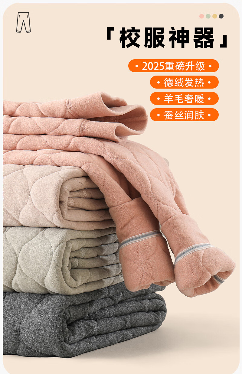 小猪班纳(PEPCO)儿童校服神器棉裤学生男童加绒加厚冬季中大童女童羊毛保暖裤 卡其色 130 推荐体重【40-50斤】