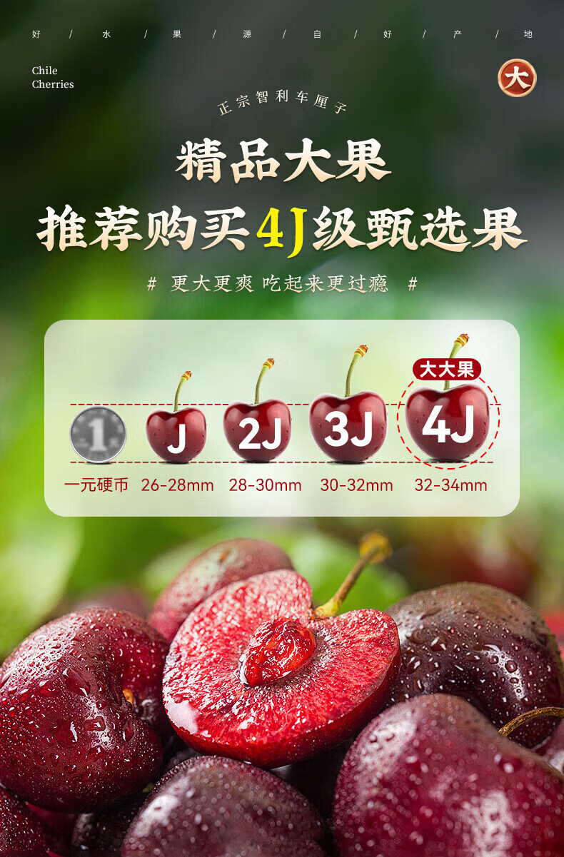江南沐汐智利车厘子【JD顺丰-多地次日达】进口4J级樱桃水果原箱礼盒 5斤(净重) 巨无霸3J 单果30-32mm