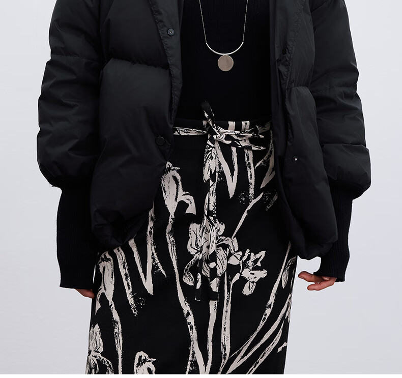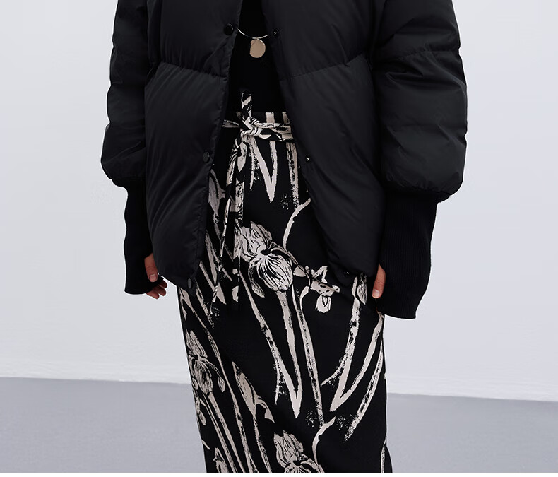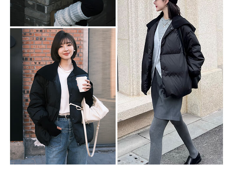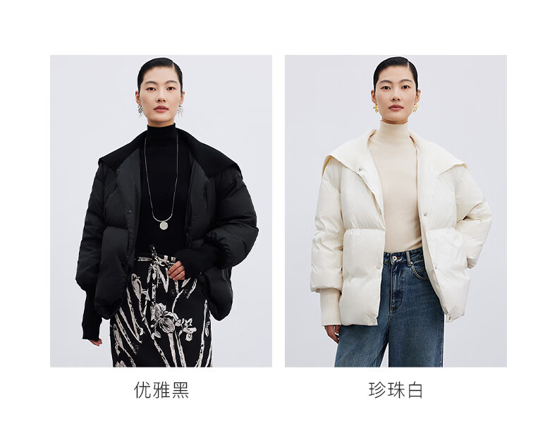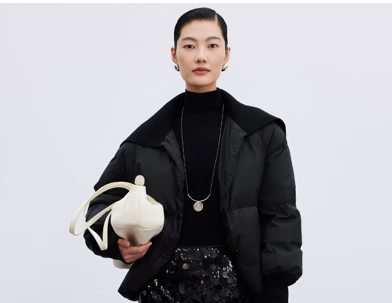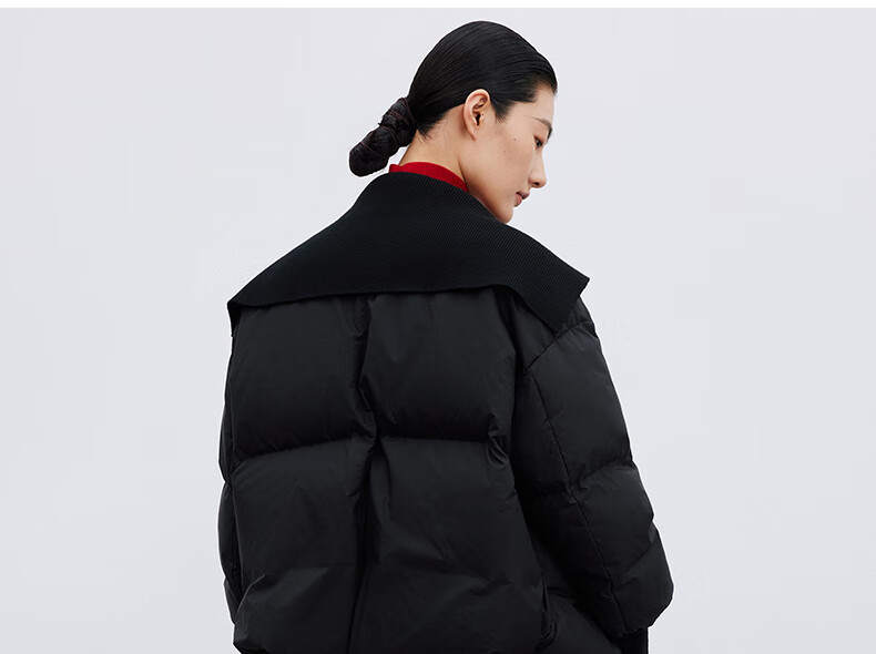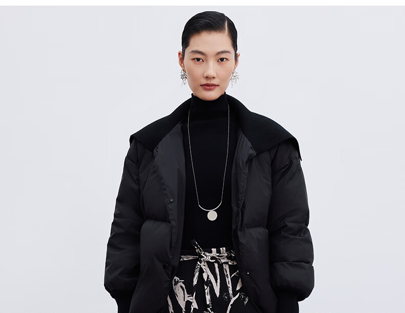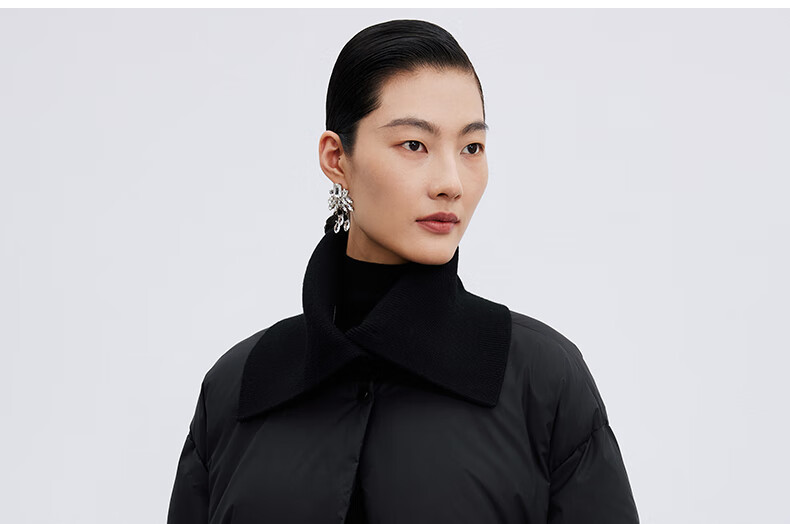 乙来(EASTERN LIGHT)【甄选90大朵白鸭绒】羽绒服女装冬季短款厚上衣外套新年战袍 优雅黑 L