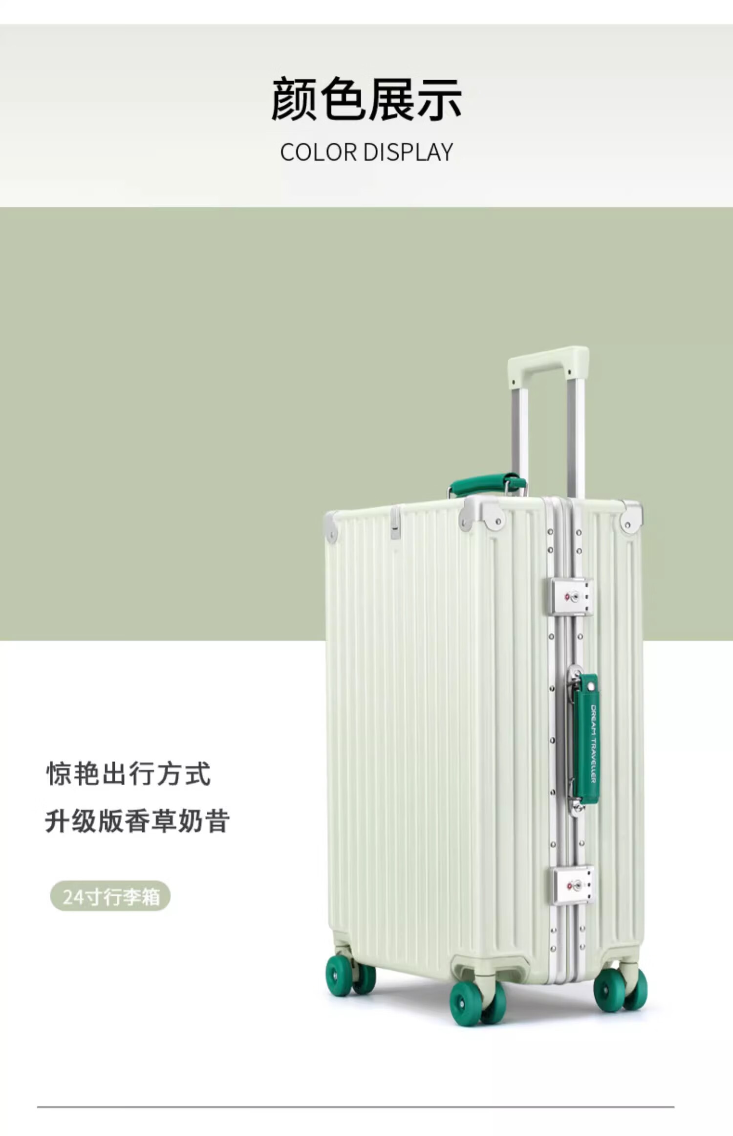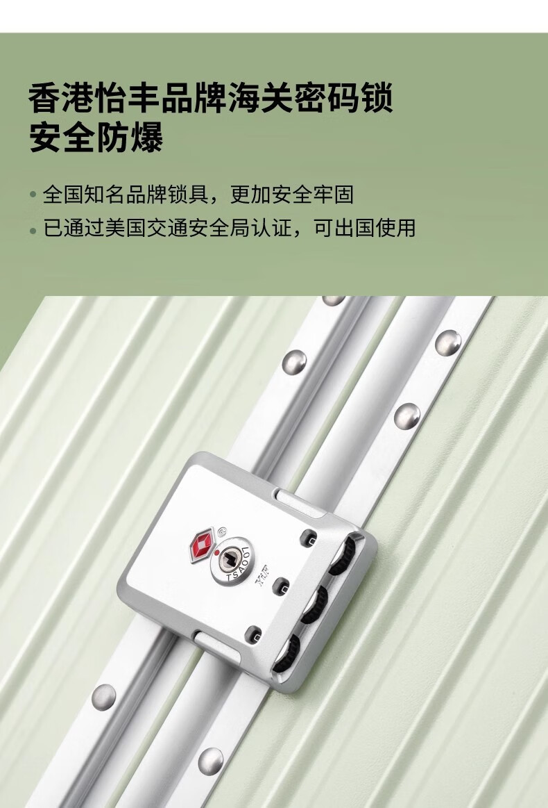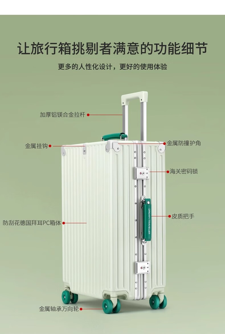 洛斯伯里(Roserooen)行李箱新款撞色复古20寸登机箱铝框拉杆箱万向轮高颜值旅行密码箱 黑配绿 26英寸