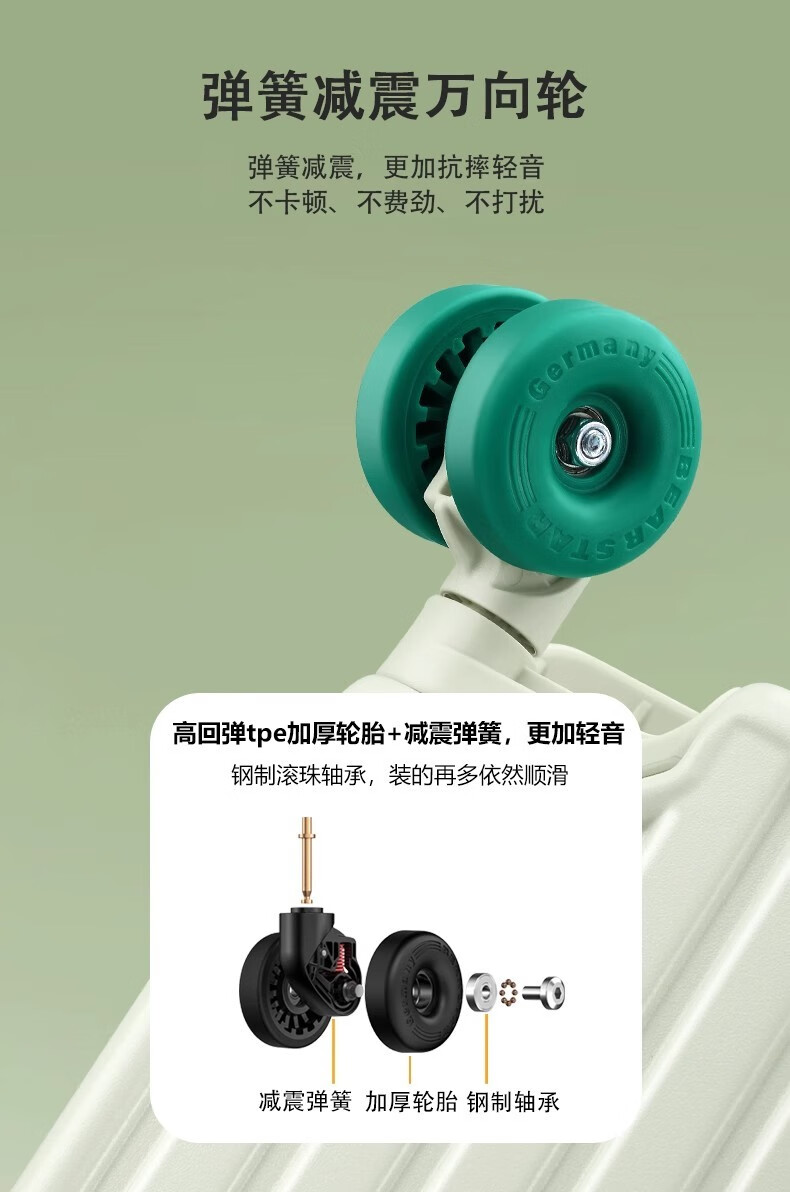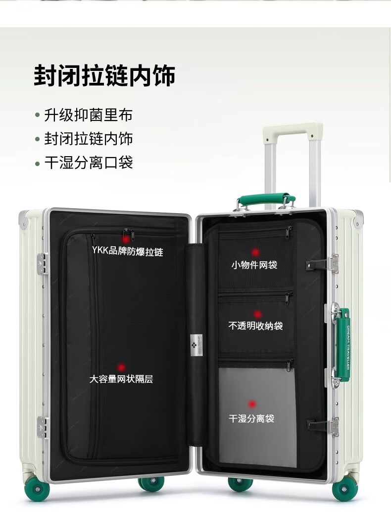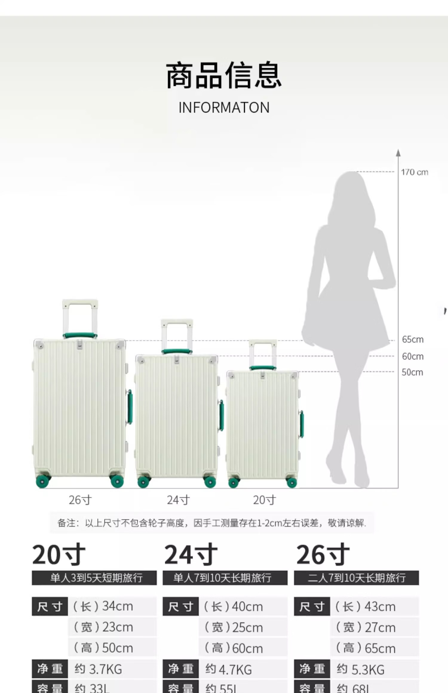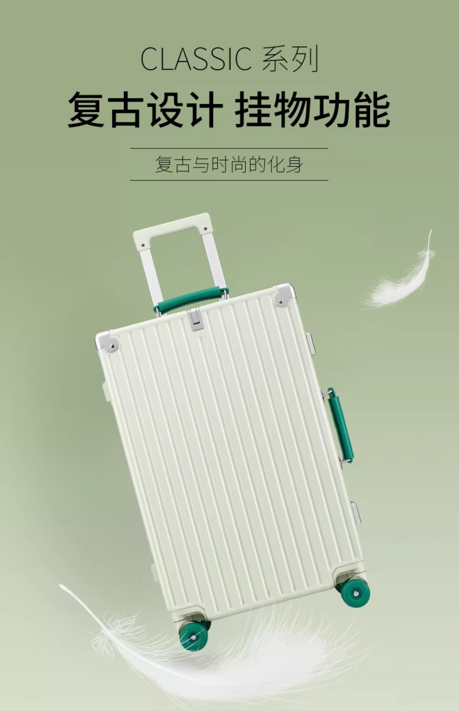 洛斯伯里(Roserooen)行李箱新款撞色复古20寸登机箱铝框拉杆箱万向轮高颜值旅行密码箱 黑配绿 26英寸