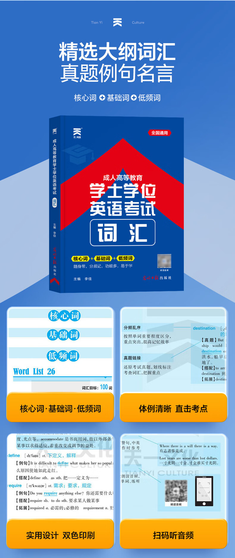 天一学士学位英语备考2026年教材历年真题成人高等教育本科生考试过成考高考自考函授本科专升本河南江苏贵州北京湖南山东省广东省等全国通用 学士学位英语【词汇书】 全国通用