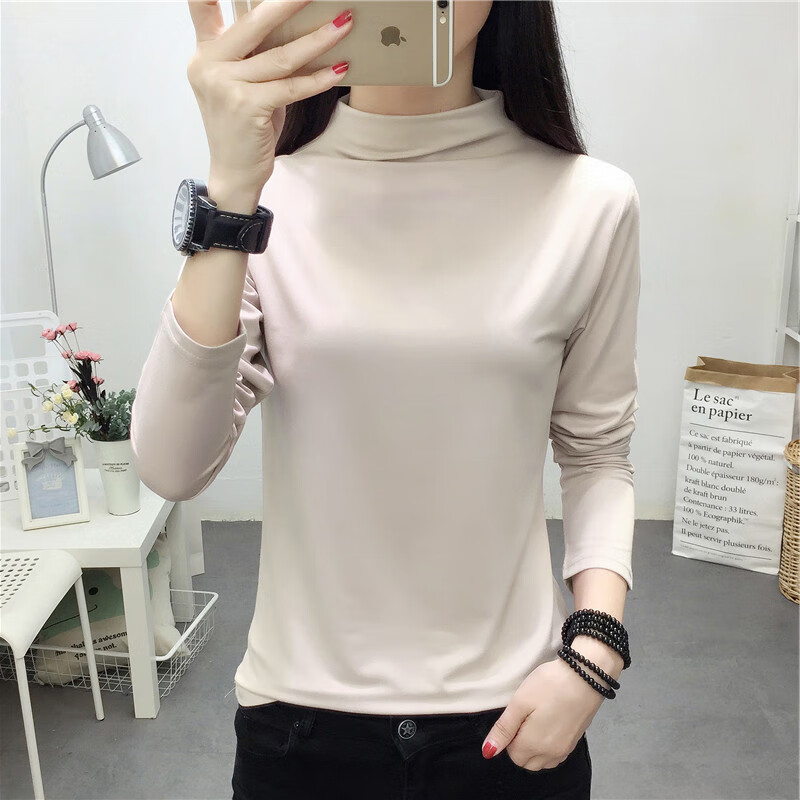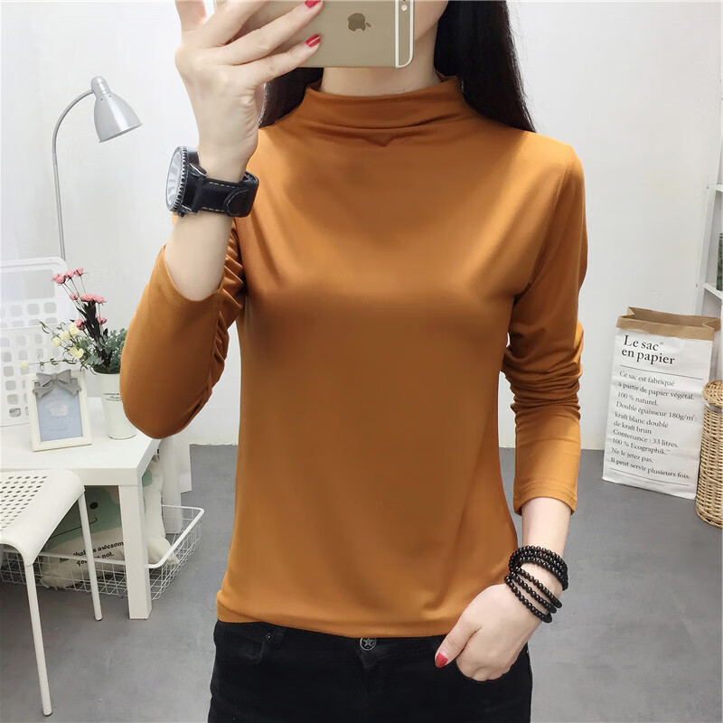 秋冬半高领打底衫女内搭2026新款显瘦宽松卫衣春长袖t恤上衣8003 加绒纯色卫衣-黑色 L 参考100-115斤