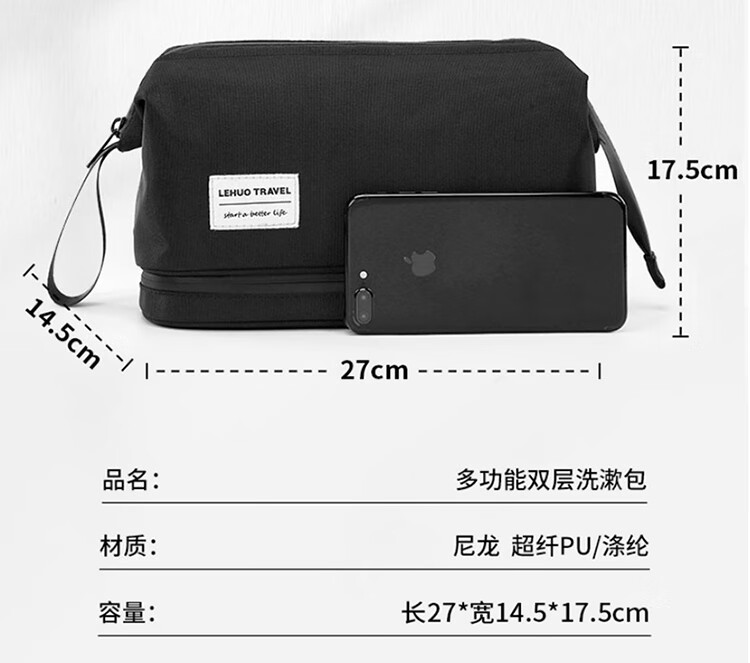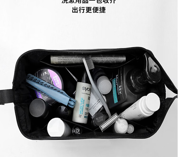洗漱包男旅行套装男士出差干湿分离便携洗澡收纳袋化妆盒洗浴用品 黑色小号