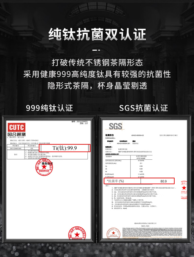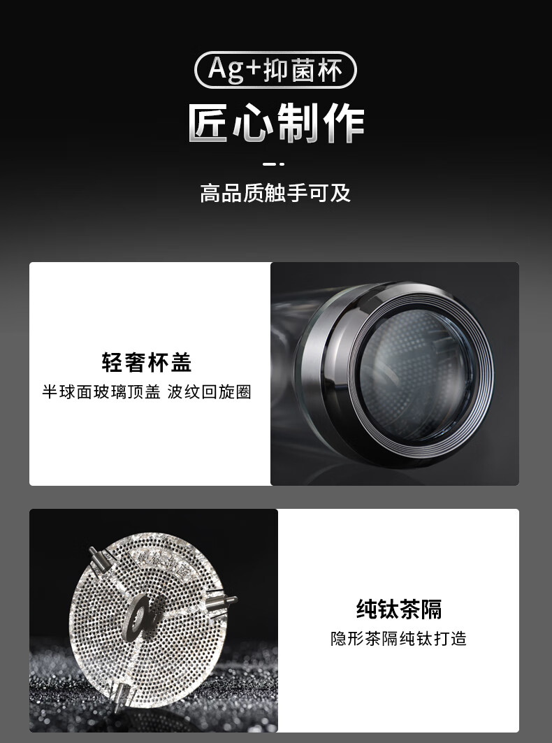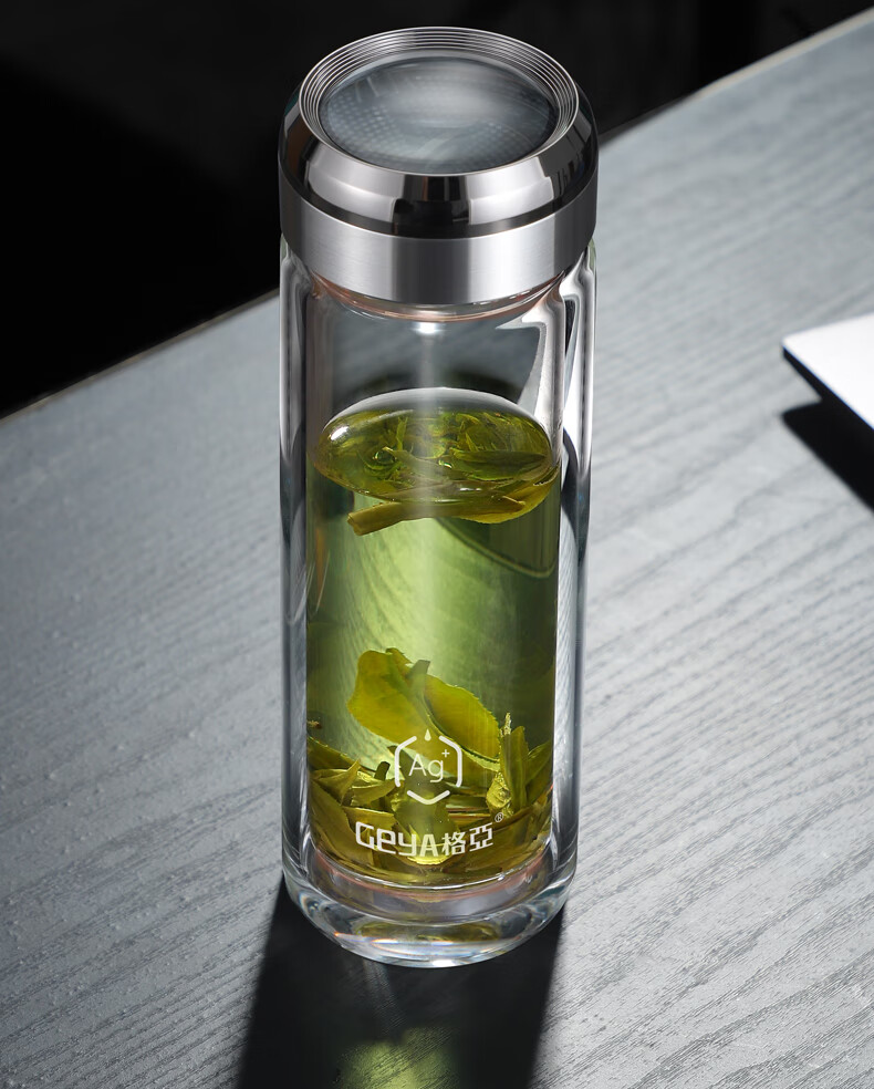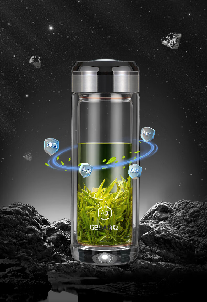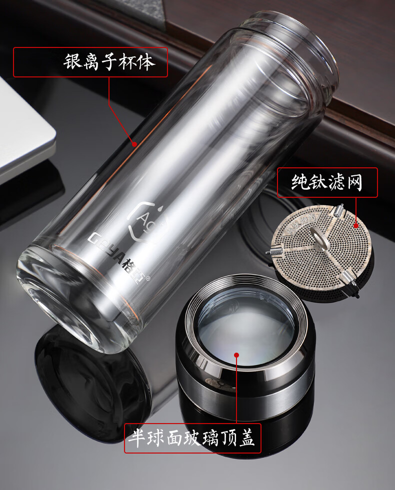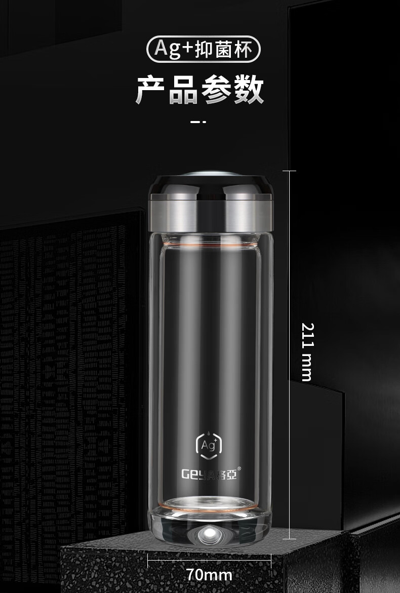 格亚(GEYA)AG+纯钛抗菌双层玻璃杯银离子抗菌茶杯男商务办公水杯子高档礼盒 AG+纯钛抗菌款【高档礼盒】400ml