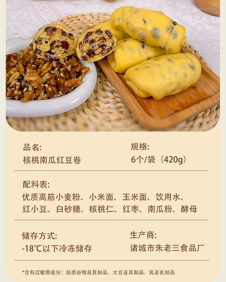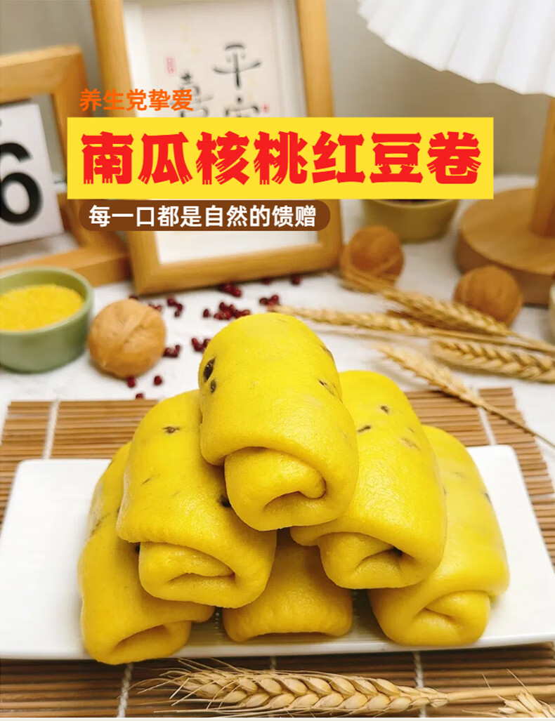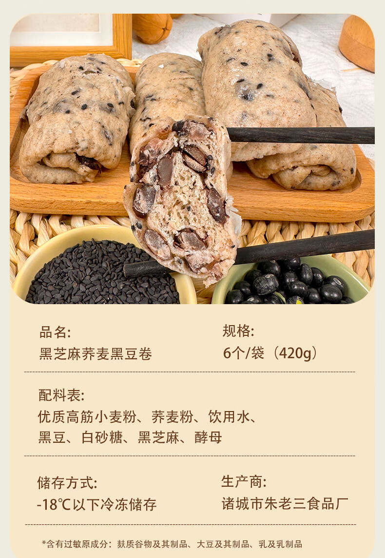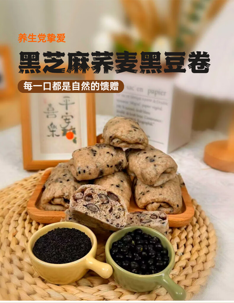 核桃南瓜红豆卷加热即食早餐荞麦绿豆速食营养粗粮细作半成品面点 黑芝麻荞麦黑豆卷420g*3袋