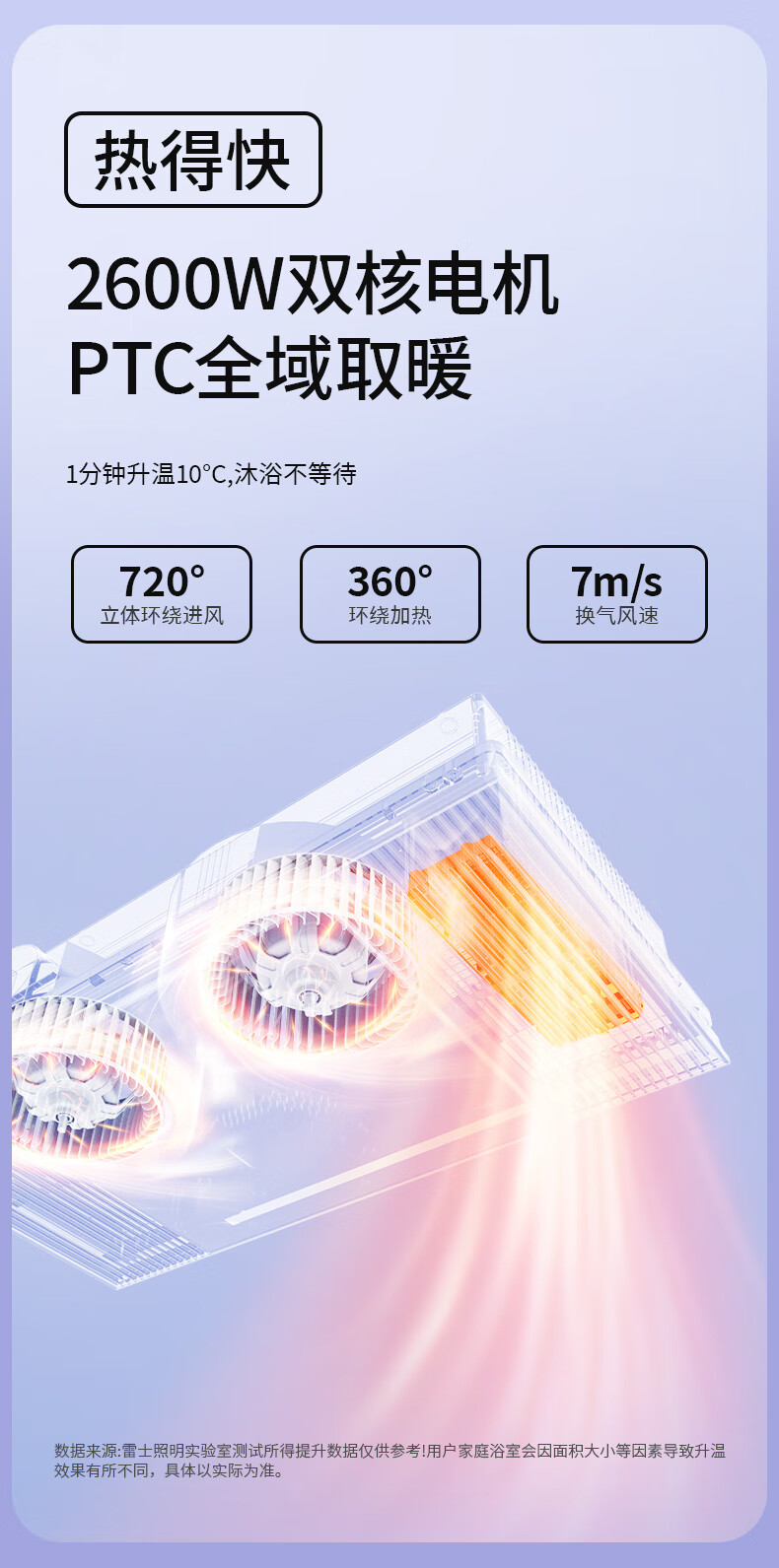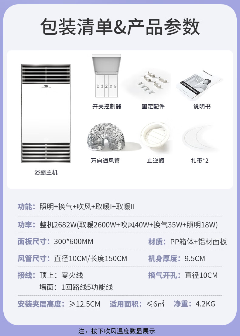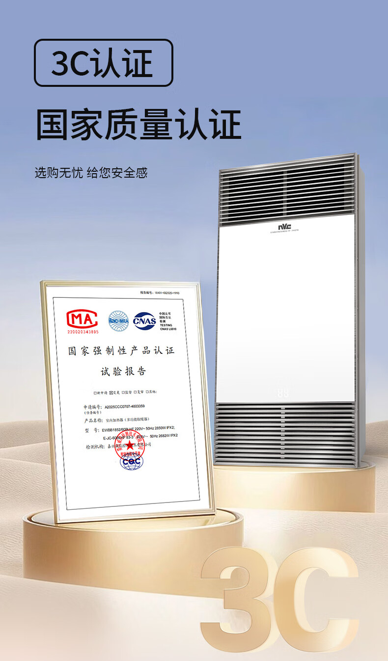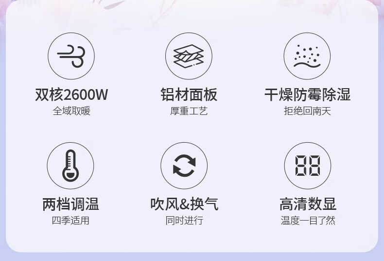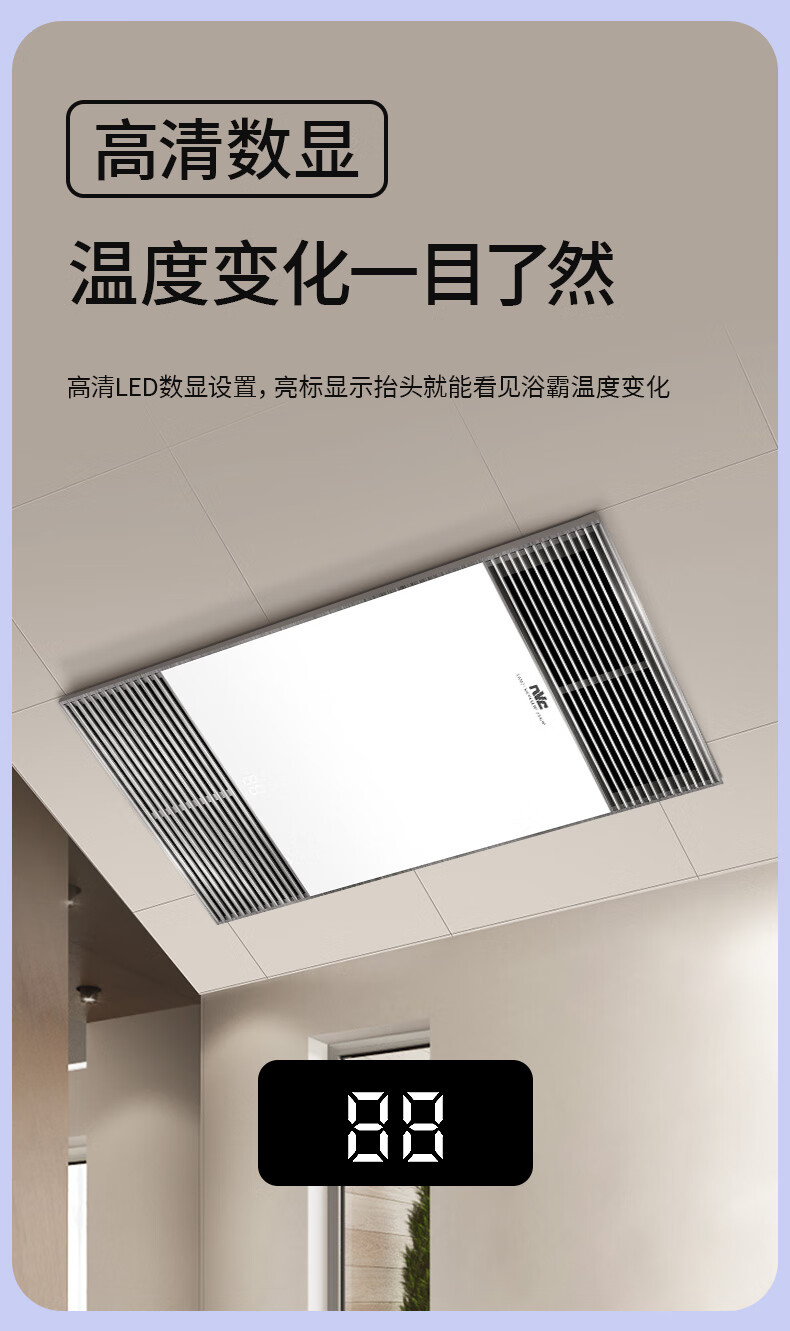 雷士(NVC)风暖浴霸双核机械系列铝材面板照明换气排风浴霸Y400