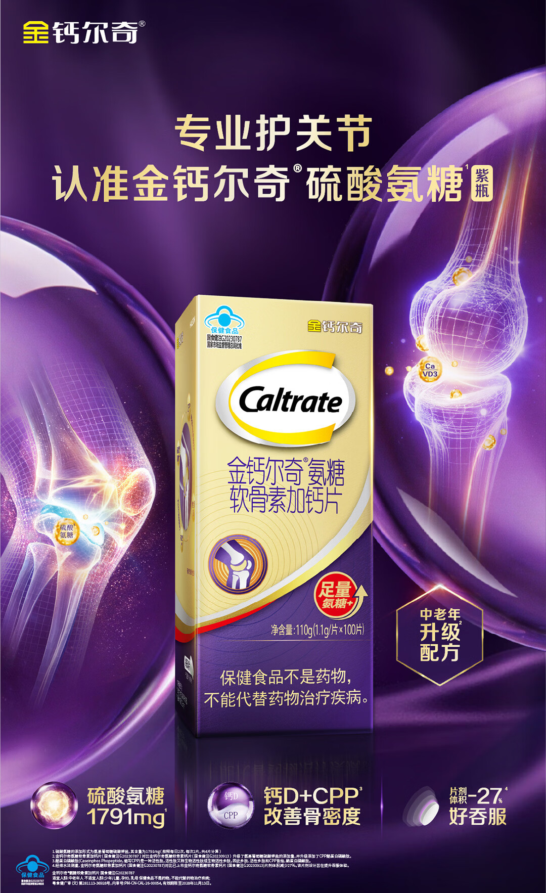 钙尔奇高阶硫酸氨糖软骨素钙片100粒 维骨力中老年补钙 送长辈