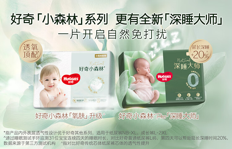 好奇(Huggies)小森林纸尿裤M50片*3包(6-11kg)尿不湿心钻【透氧顶配更低敏】