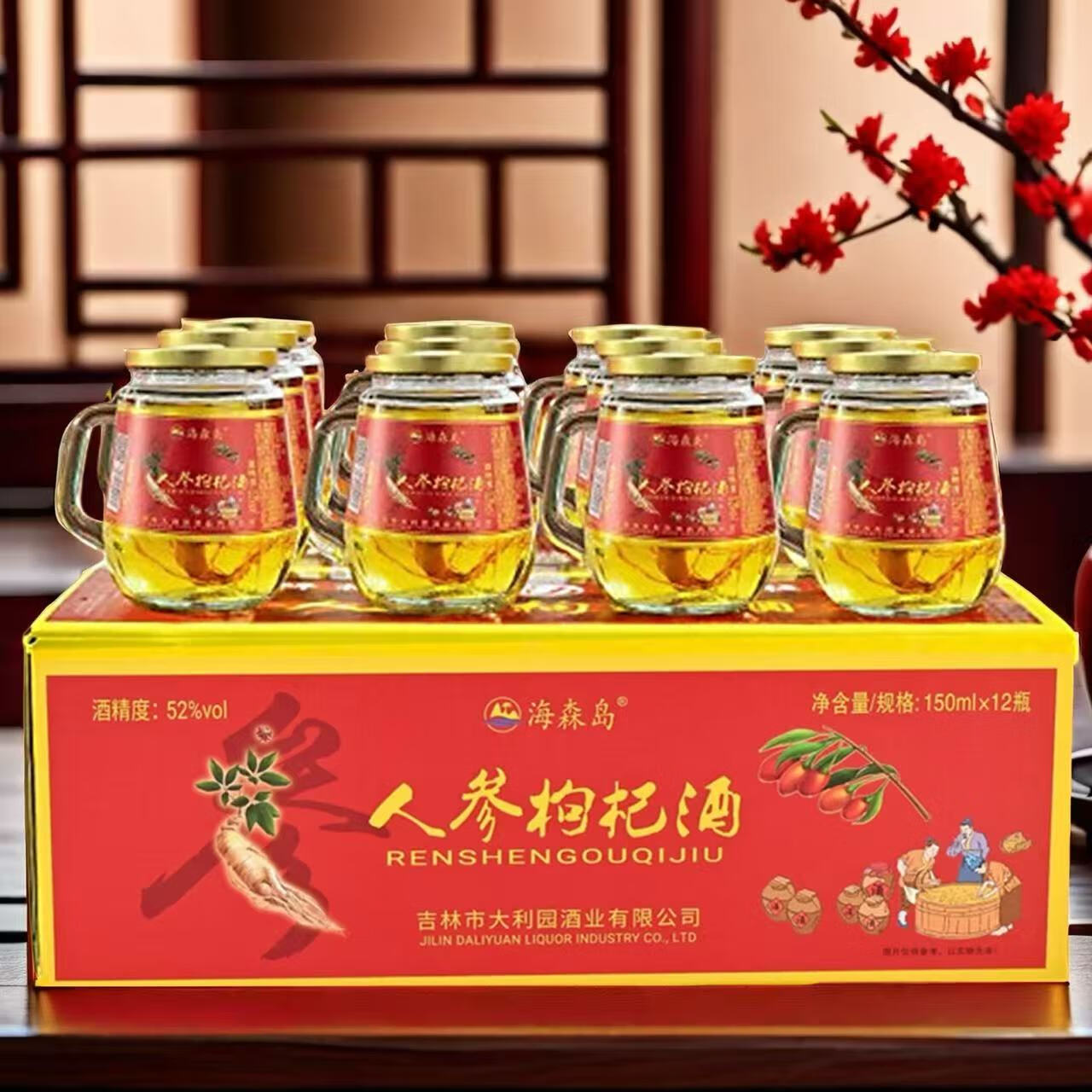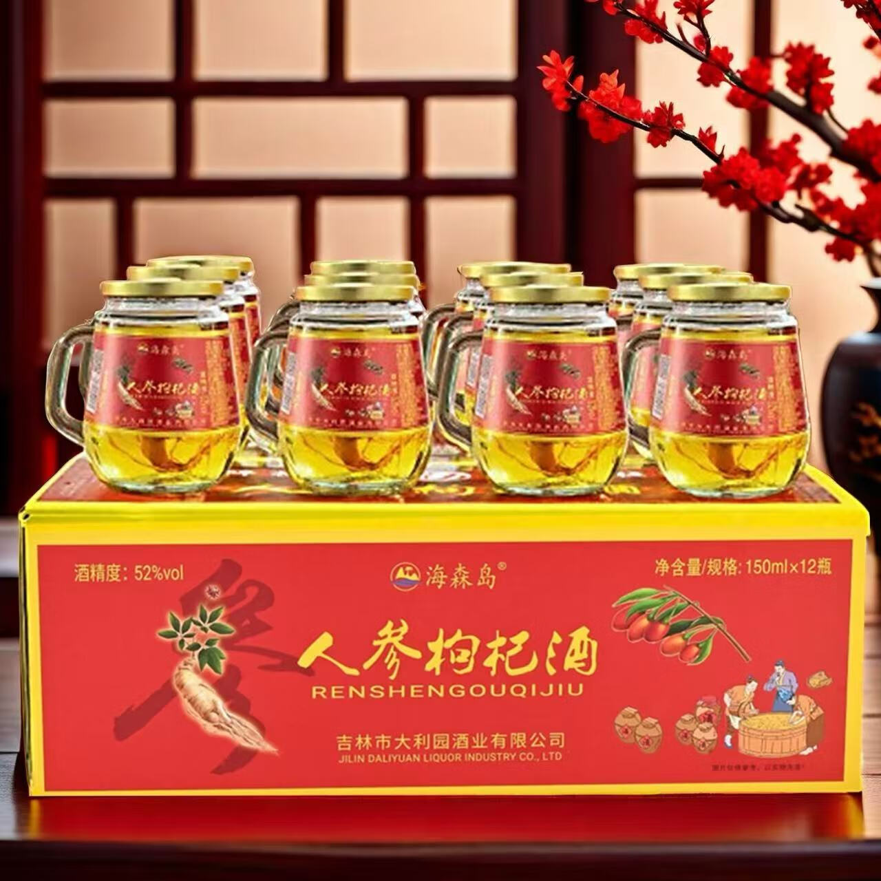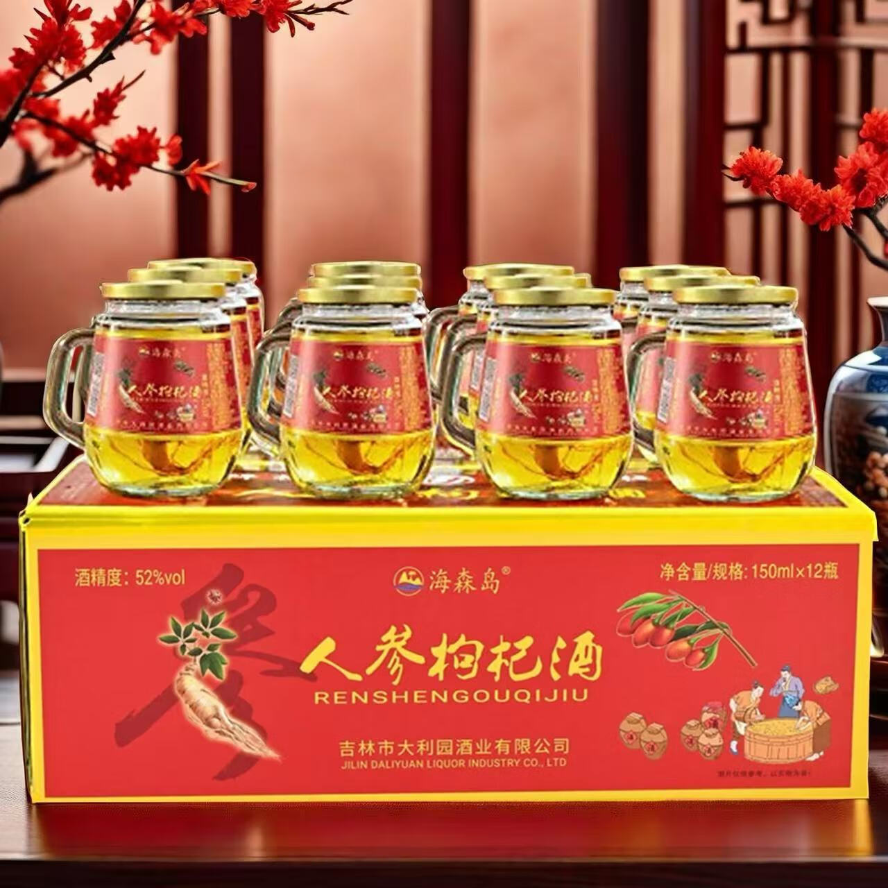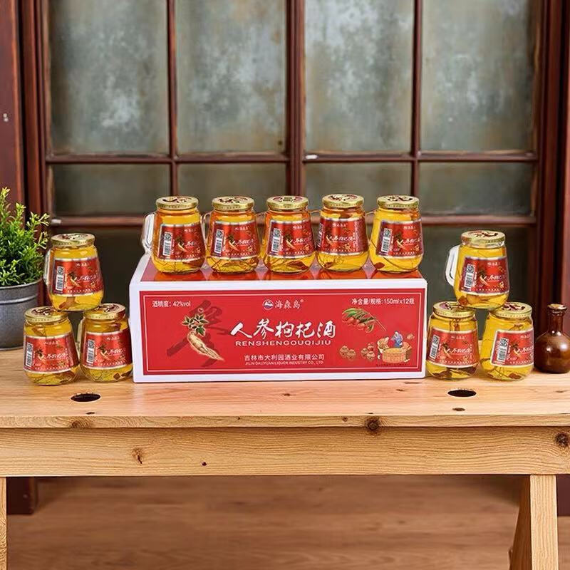 【长白山特产】人参枸杞酒大参礼盒装养生滋补酒 42度 150mL 12瓶 礼盒装【大参】