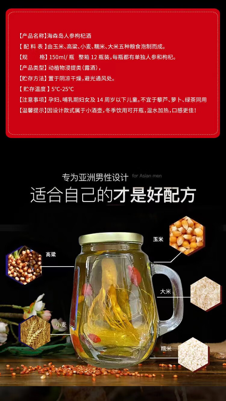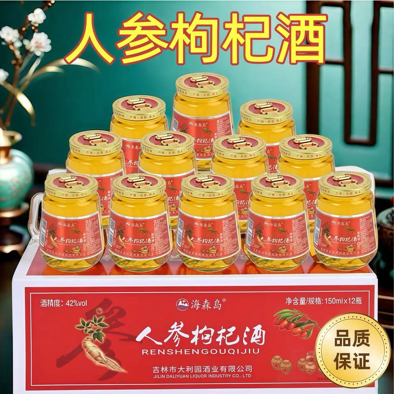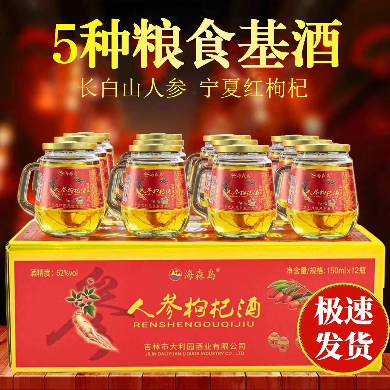 【长白山特产】人参枸杞酒大参礼盒装养生滋补酒 42度 150mL 12瓶 礼盒装【大参】