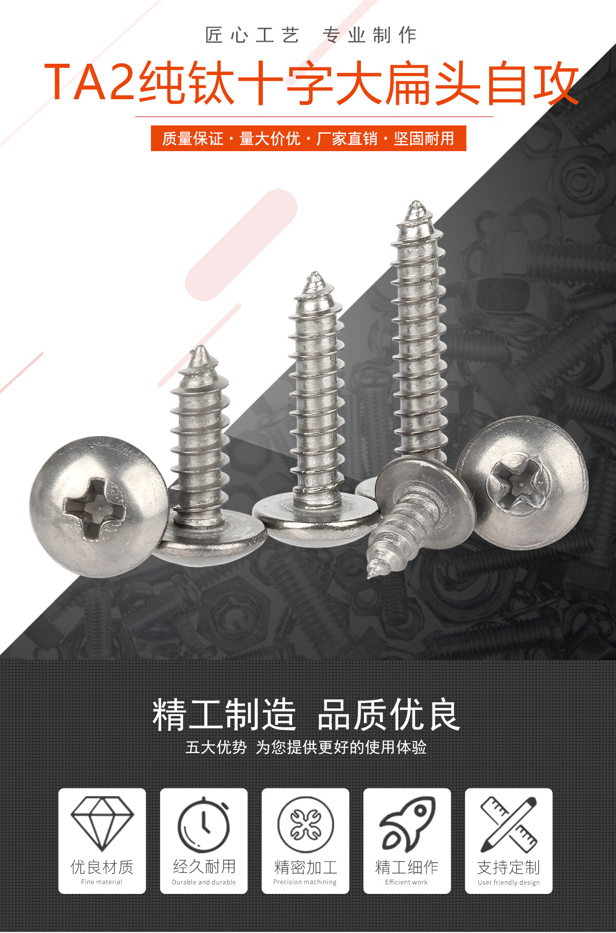 宝德丰国标TA2纯钛十字大扁头自攻螺丝钉伞头蘑菇头圆头十字木螺丝M4M5 M4x10(5只)