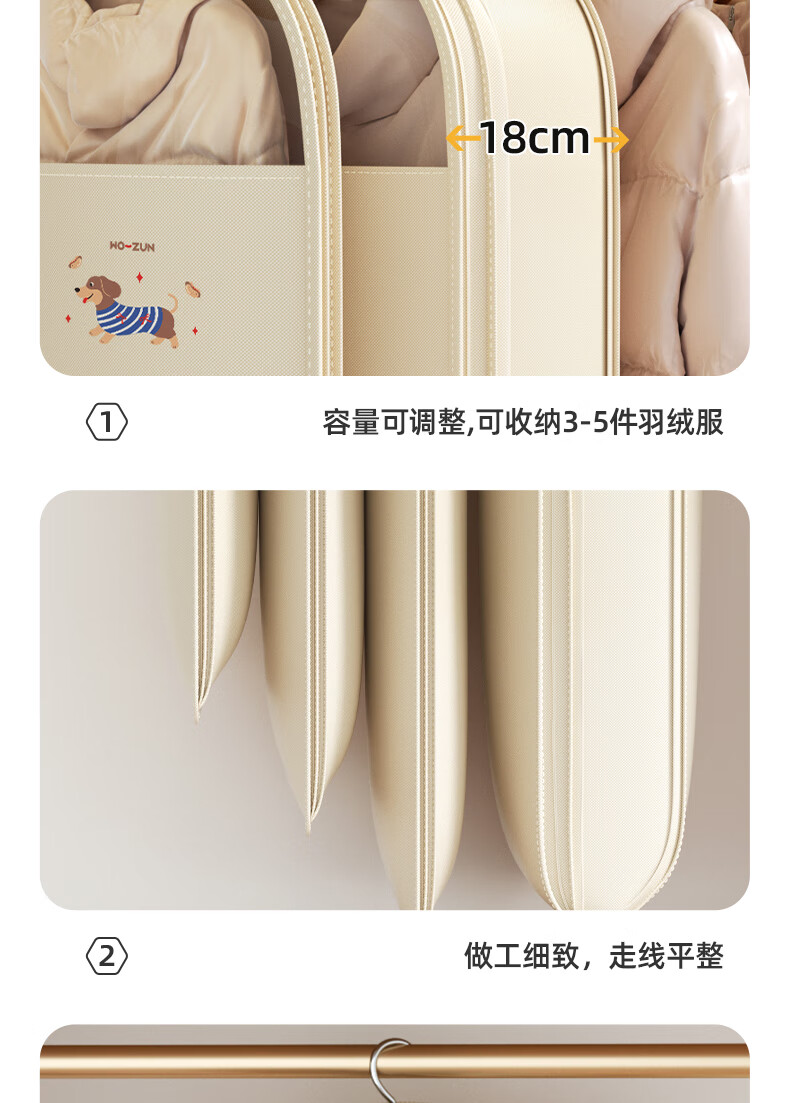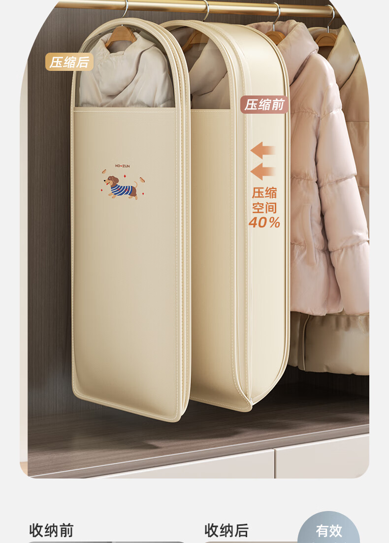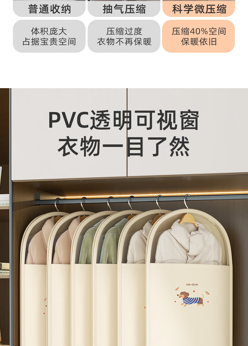 沃尊衣服防尘罩羽绒服收纳袋压缩专用挂式家用大衣衣物衣柜挂衣防尘袋 中号【腊肠狗】升级压缩款60*18*90cm