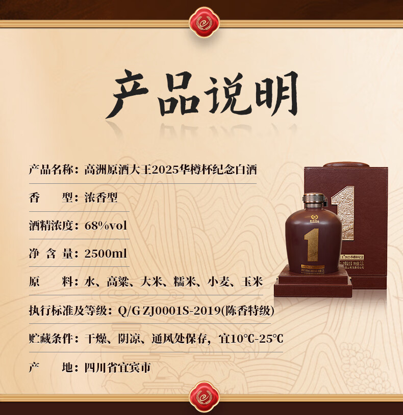 高洲2025华樽杯纪念酒【五粮液联办酒厂】浓香白酒高度商务宴请高端 68度 2.5L 1坛 【2025年11连冠版,皮制外盒,奢华到爆】