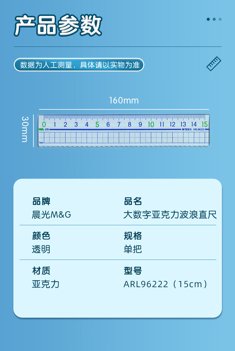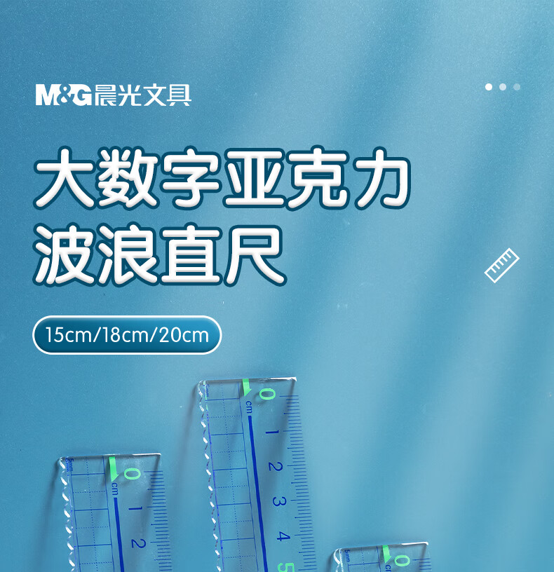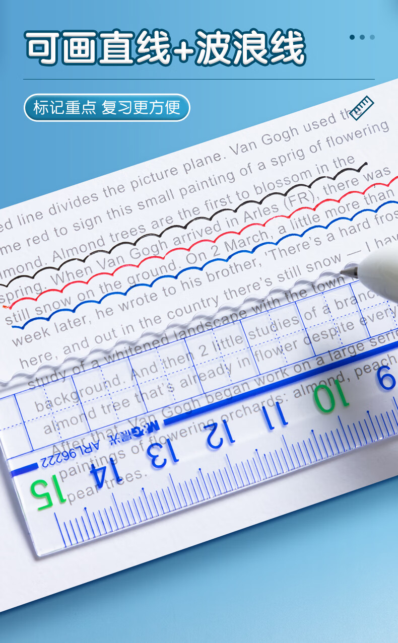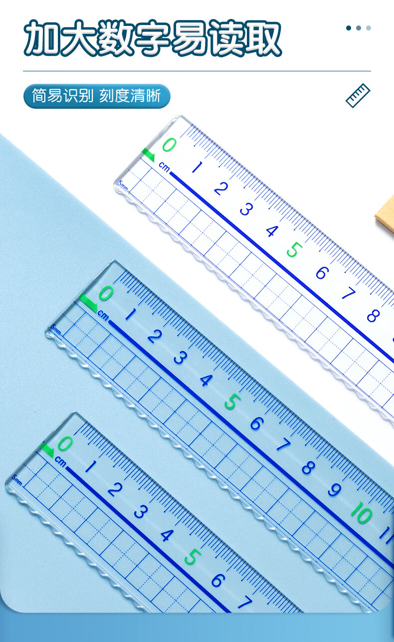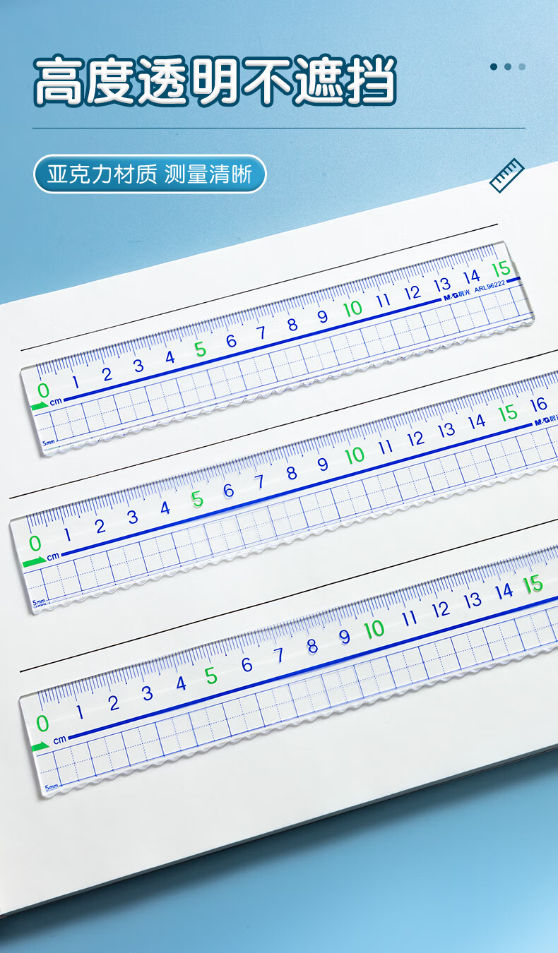 晨光(M&G)文具高透大数字亚克力波浪尺子小学生直尺18cm文具考试专用 ARL96124中考高考