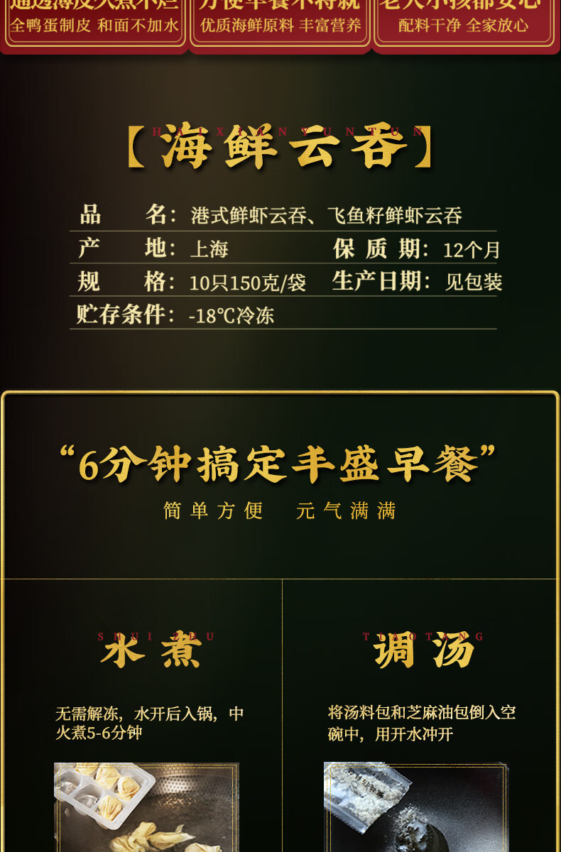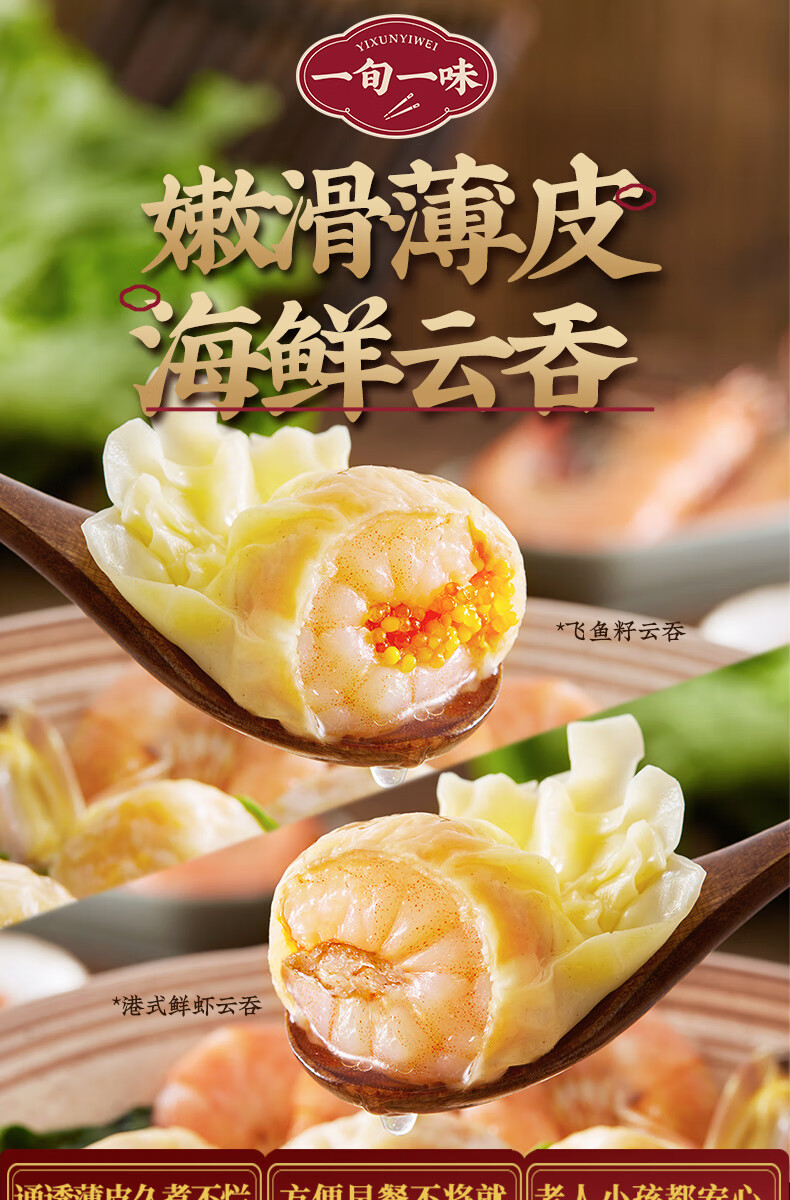 一旬一味鲜虾飞鱼籽云吞150g/10只*2袋 虾仁早餐宵夜加热即食