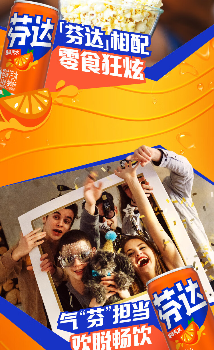 可口可乐(Coca-Cola)芬达 Fanta Mini 橙味汽水 迷你摩登罐 碳酸饮料 200ml*24 整箱装