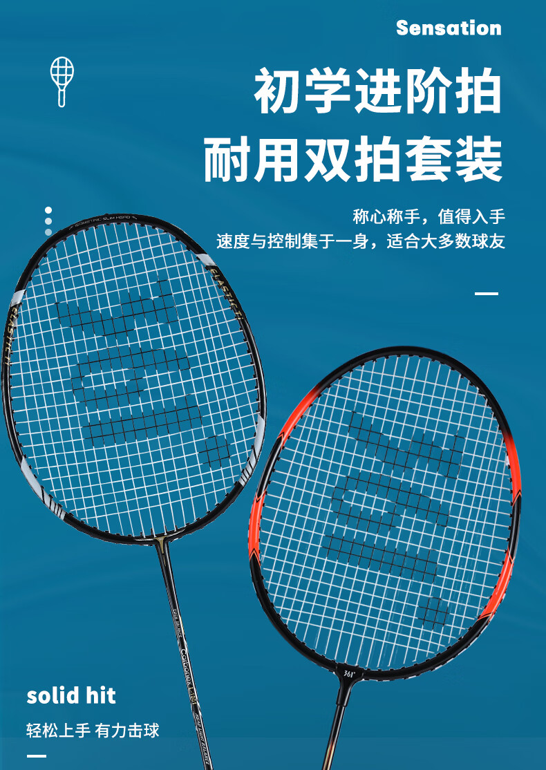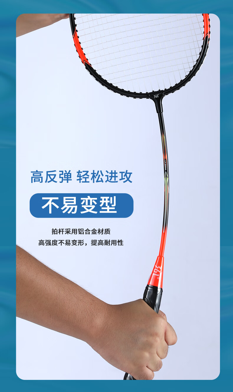 361° 羽毛球拍双拍套装入门训练初学者羽毛拍子已穿线含羽毛球手胶 铁合金双拍【黄+橙】