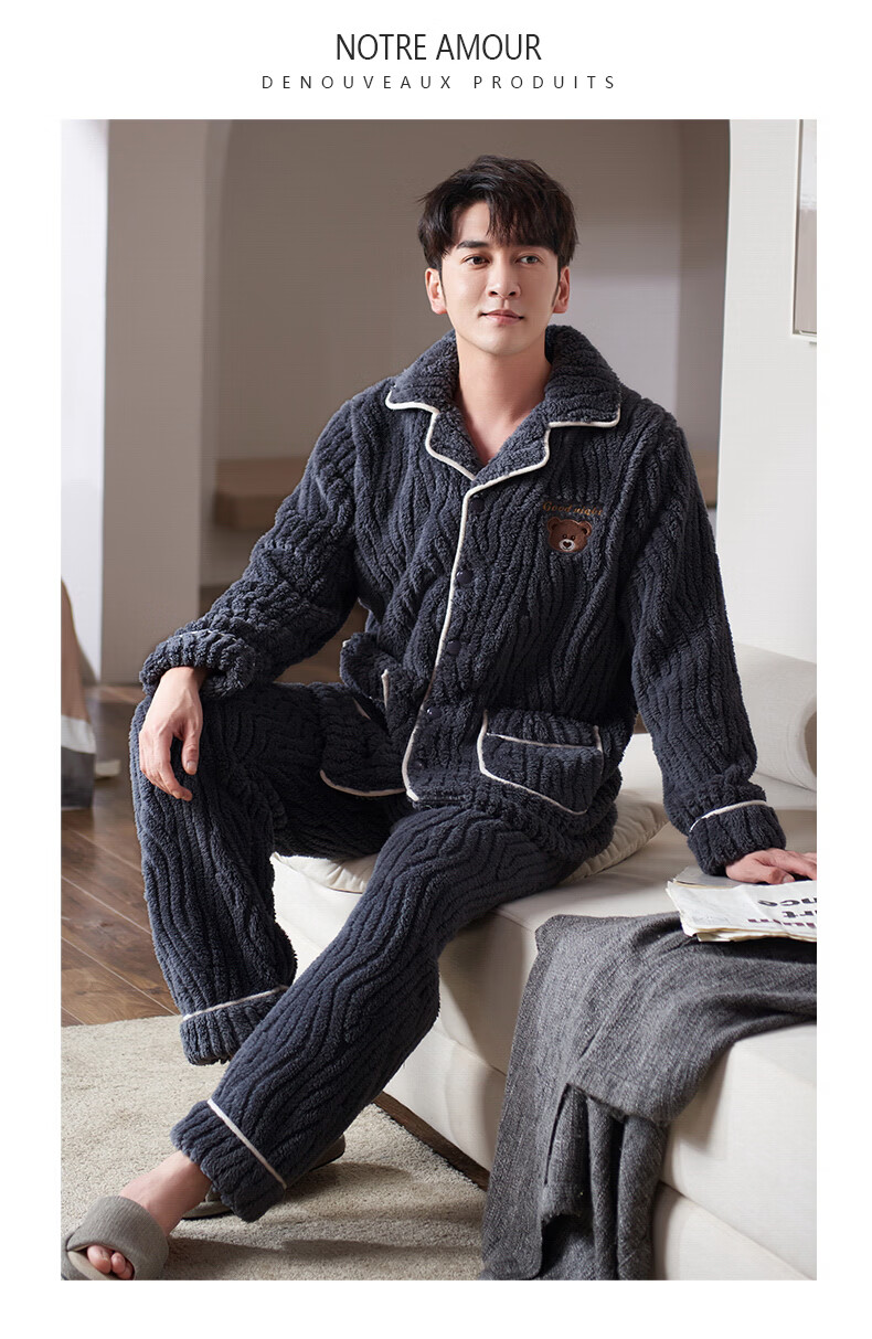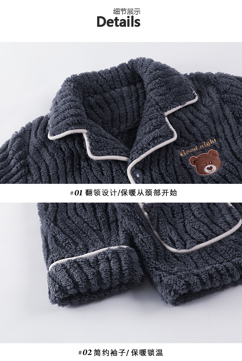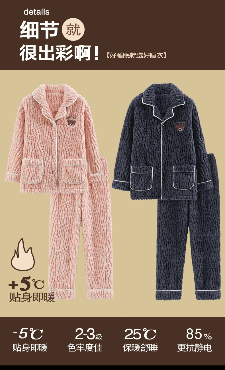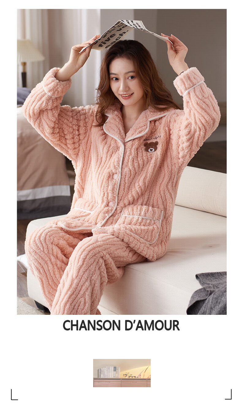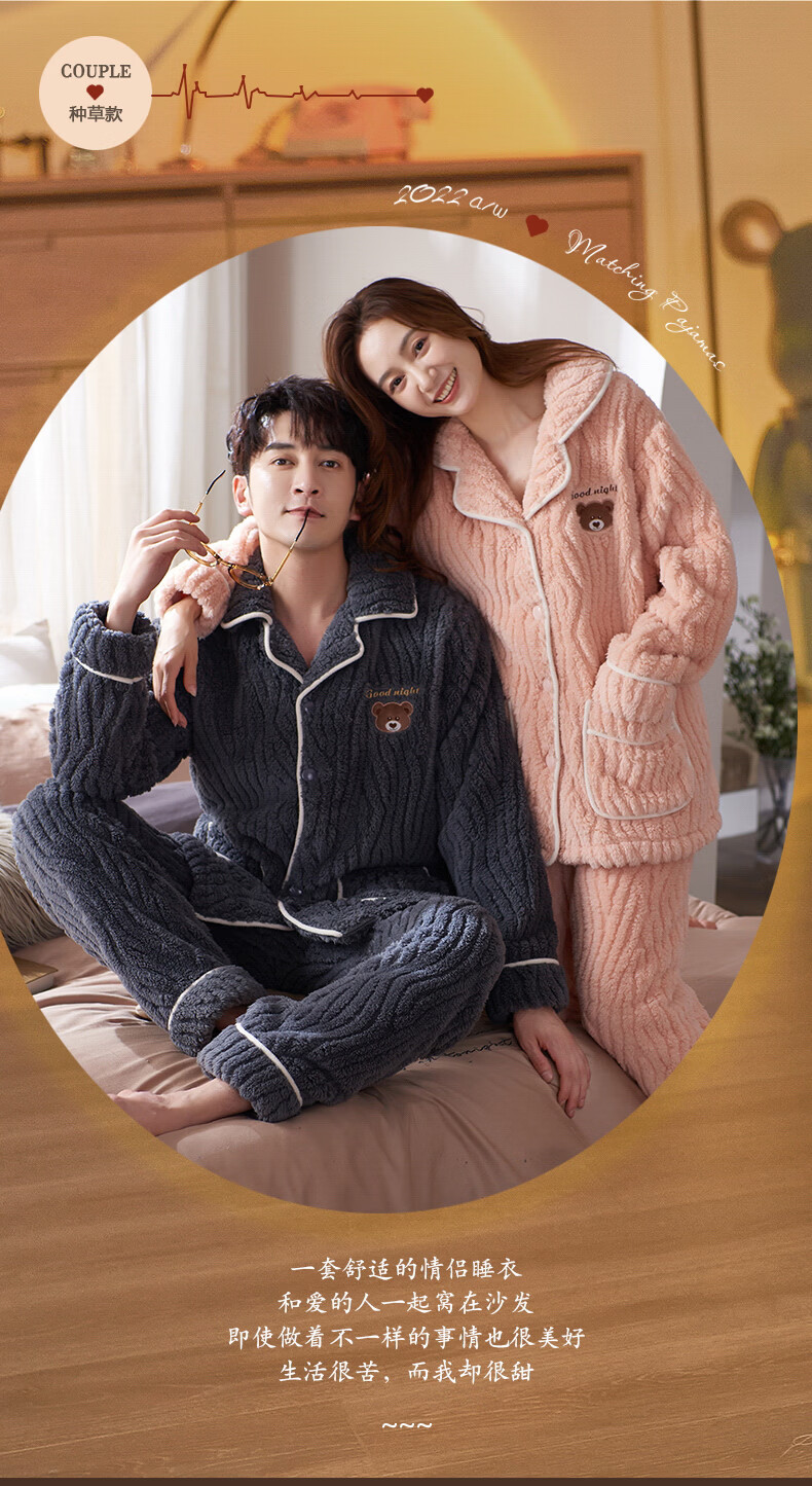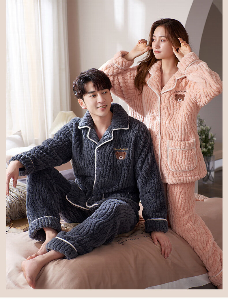 芬腾可安(FENTENGCARE)【S】情侣睡衣秋冬款珊瑚绒冬季女法兰绒加绒加厚风家居服 7136 XL【码数建议咨询客服】