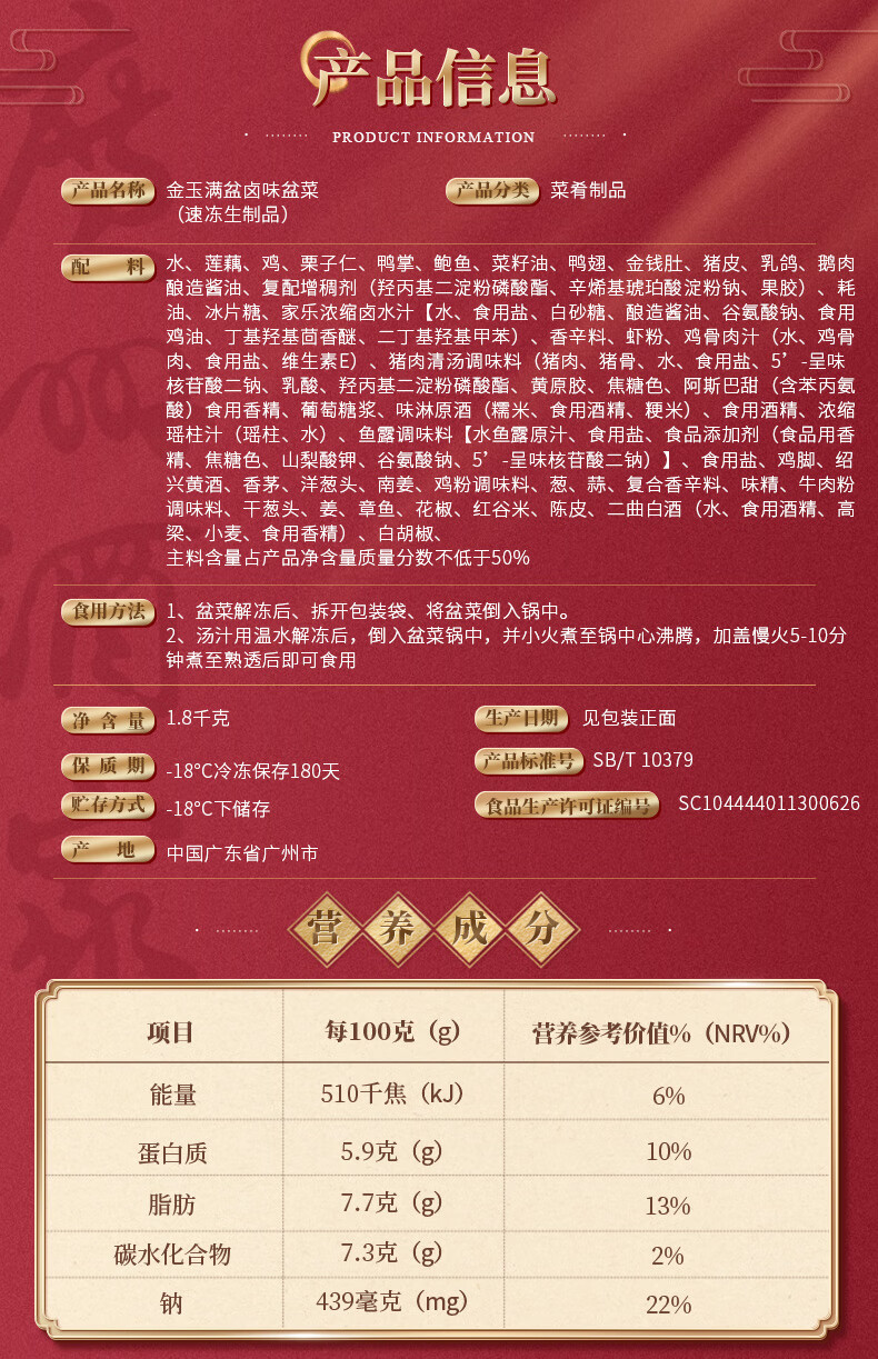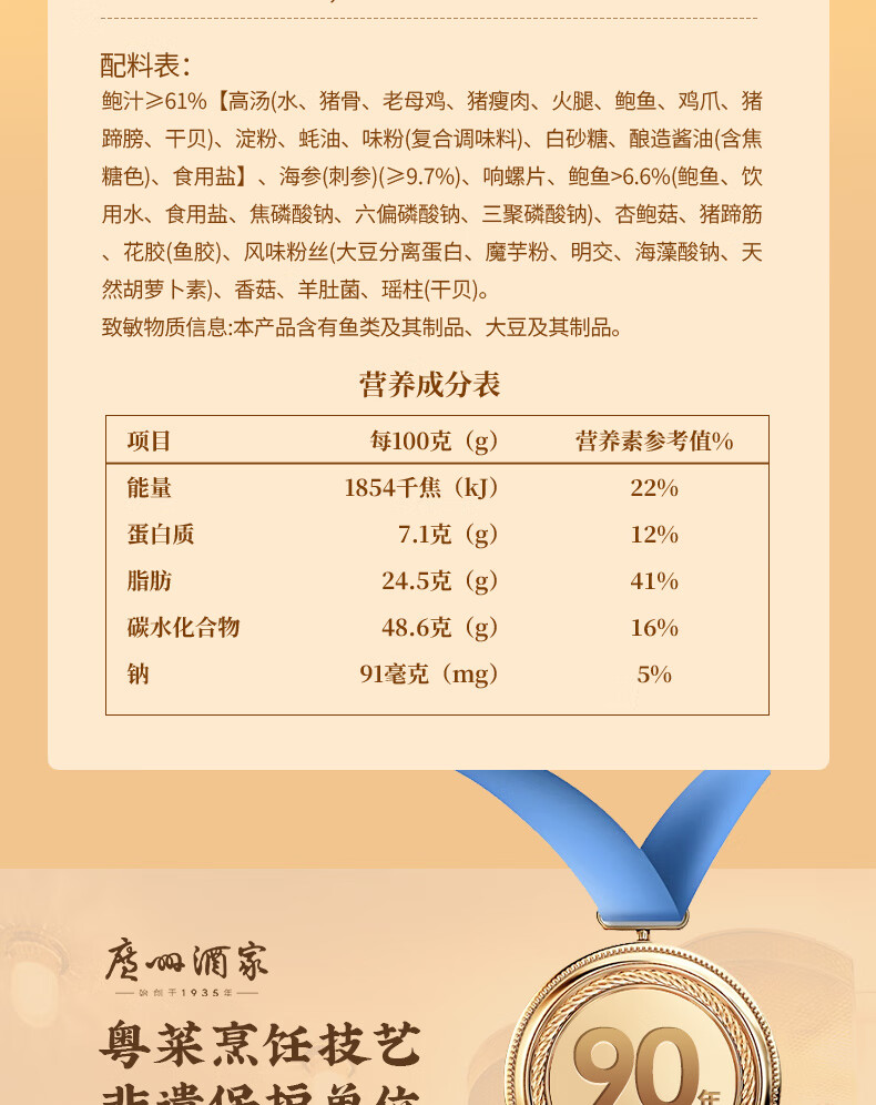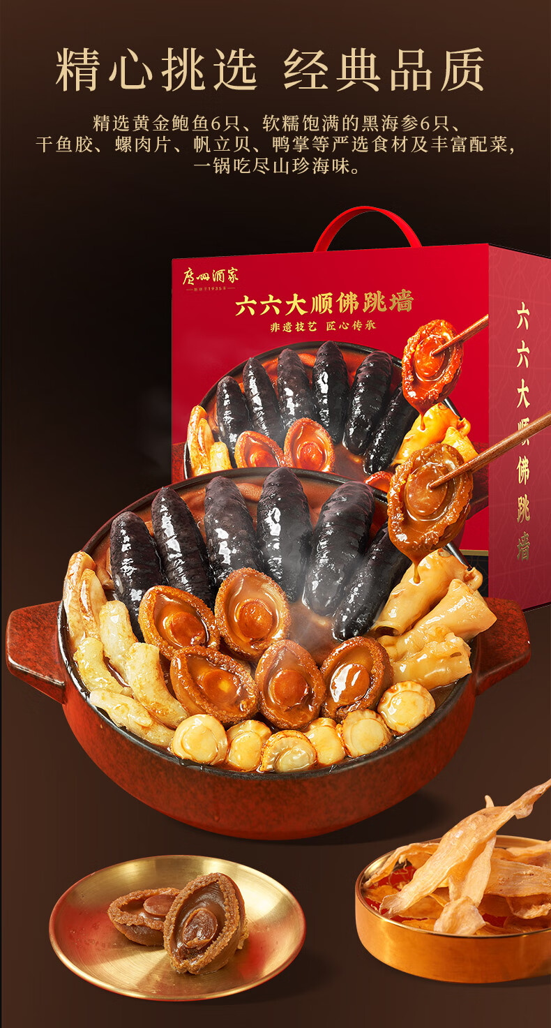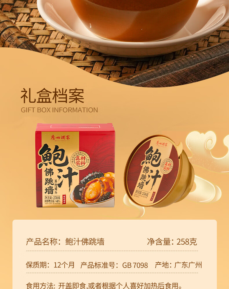 广州酒家佛跳墙盆菜4人 海参鲍鱼方便速食海鲜半成品私房菜利口福团圆饭菜 【常温保存】鲍汁佛跳墙258g