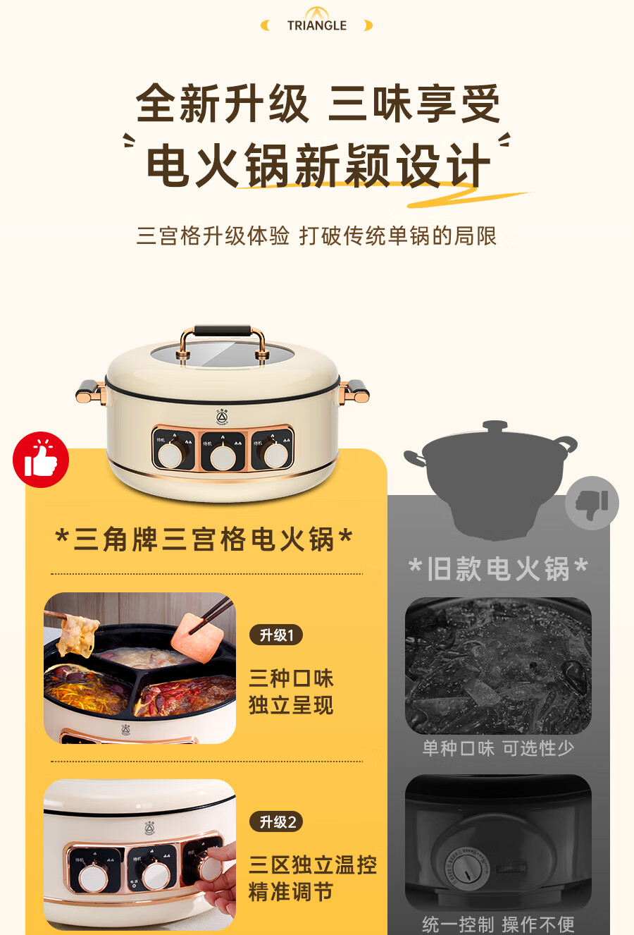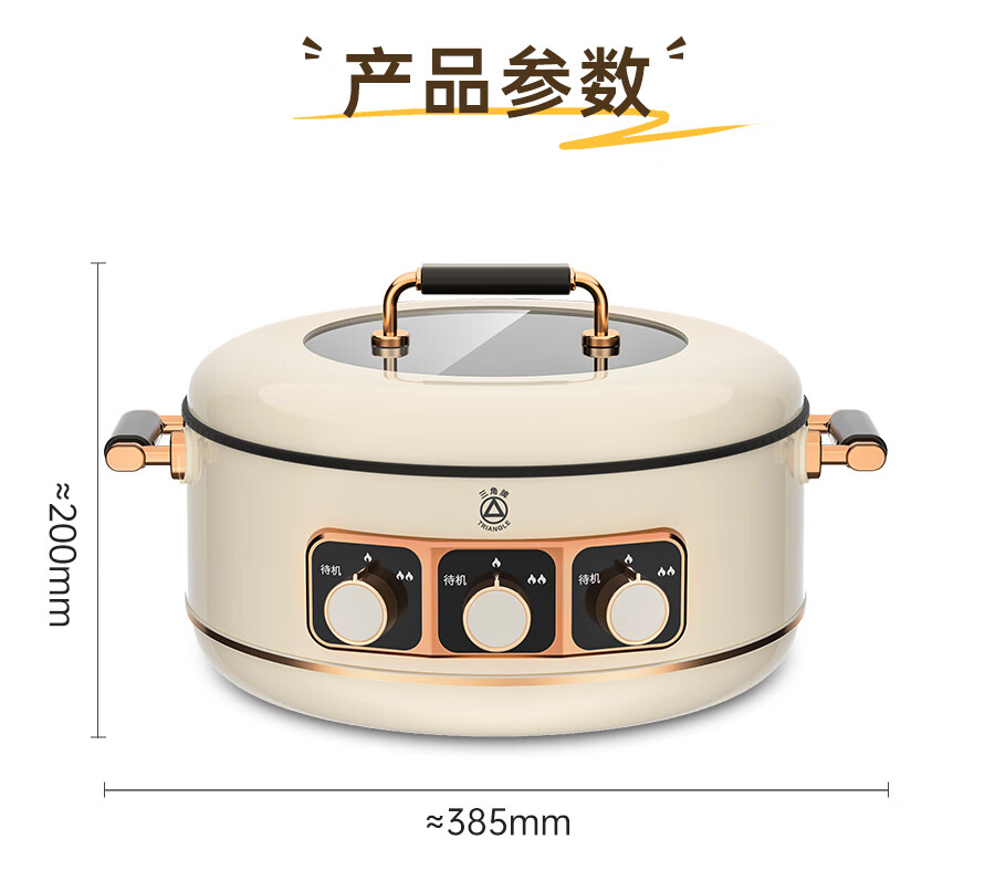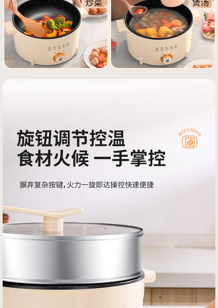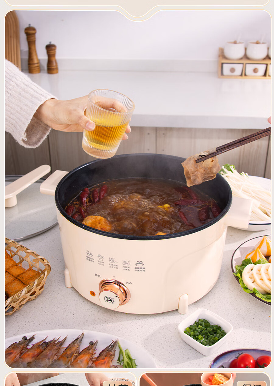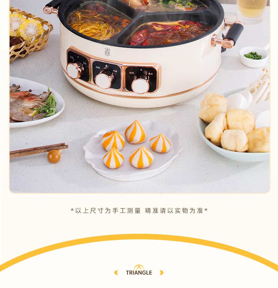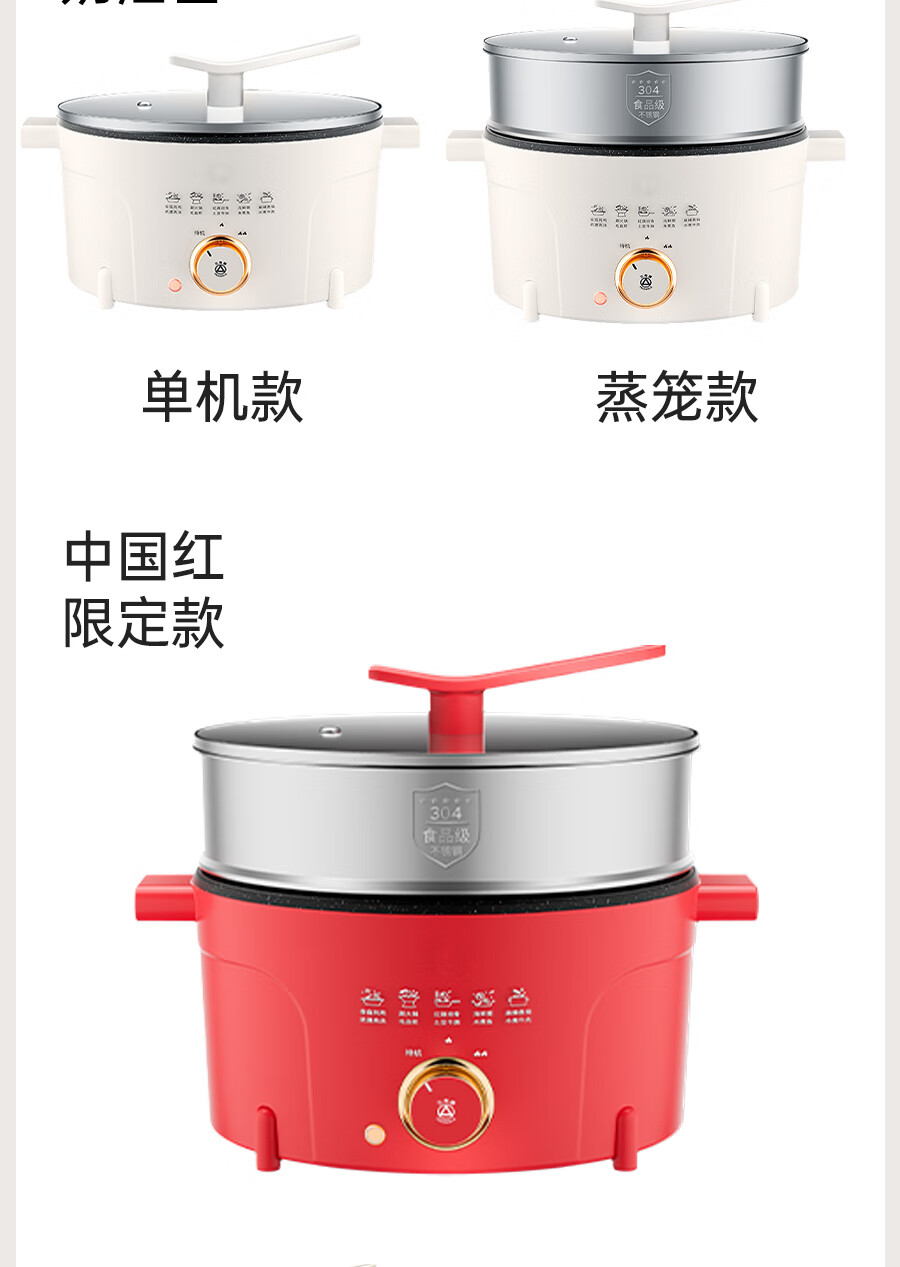 三角牌 一体电火锅 火锅专用锅 电煮锅电炒锅电热锅蒸煮家用多功能电锅 5L 【1300W大功率】配不锈钢蒸笼京东自营