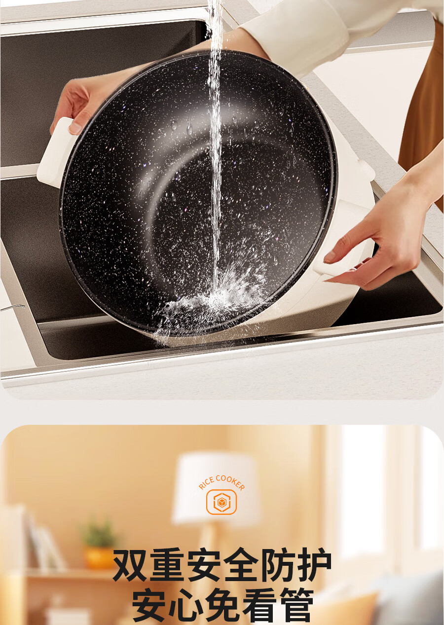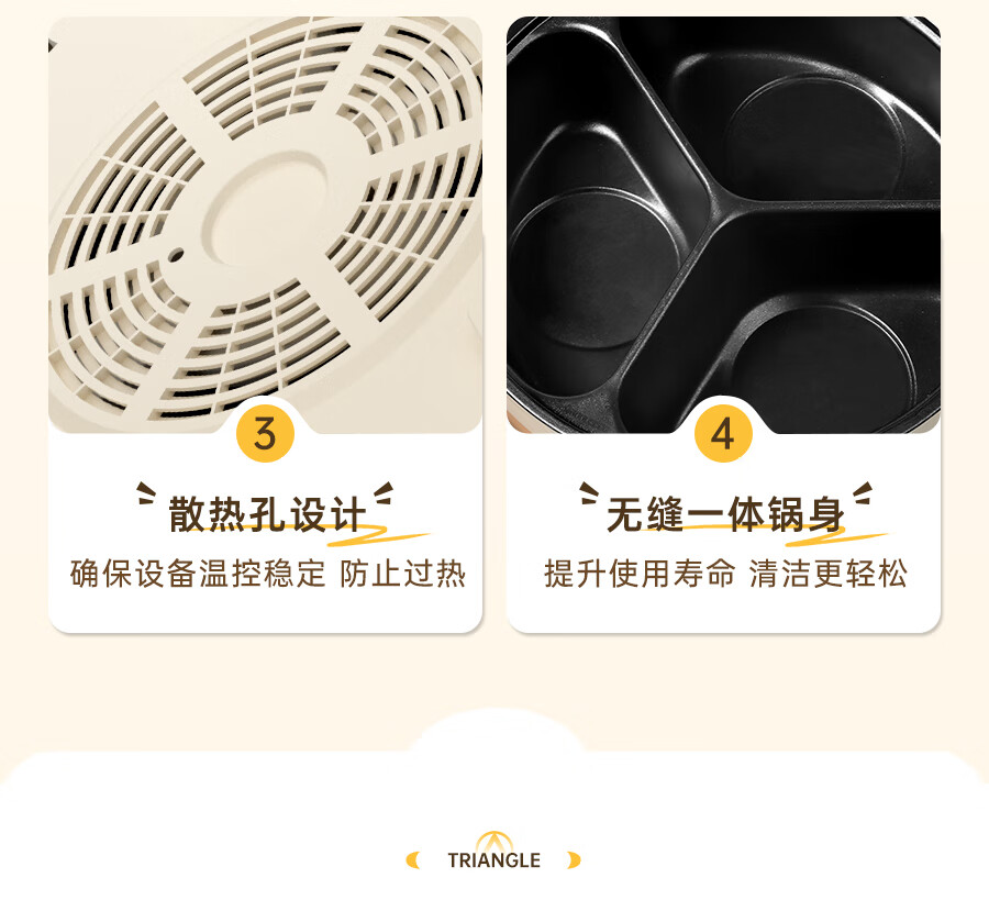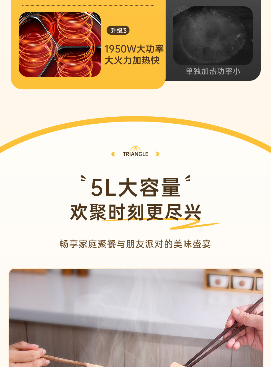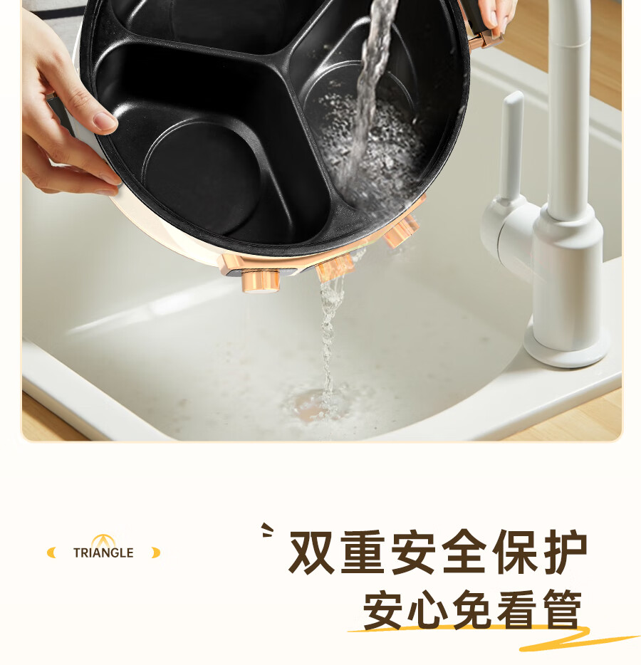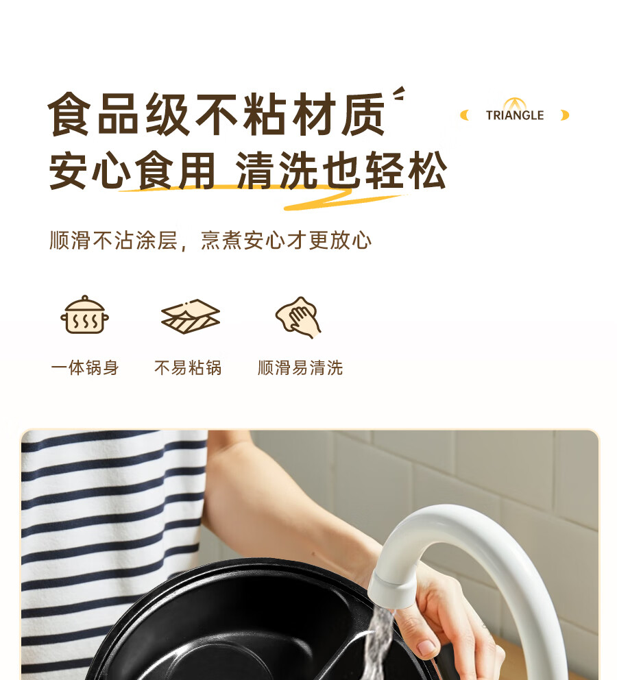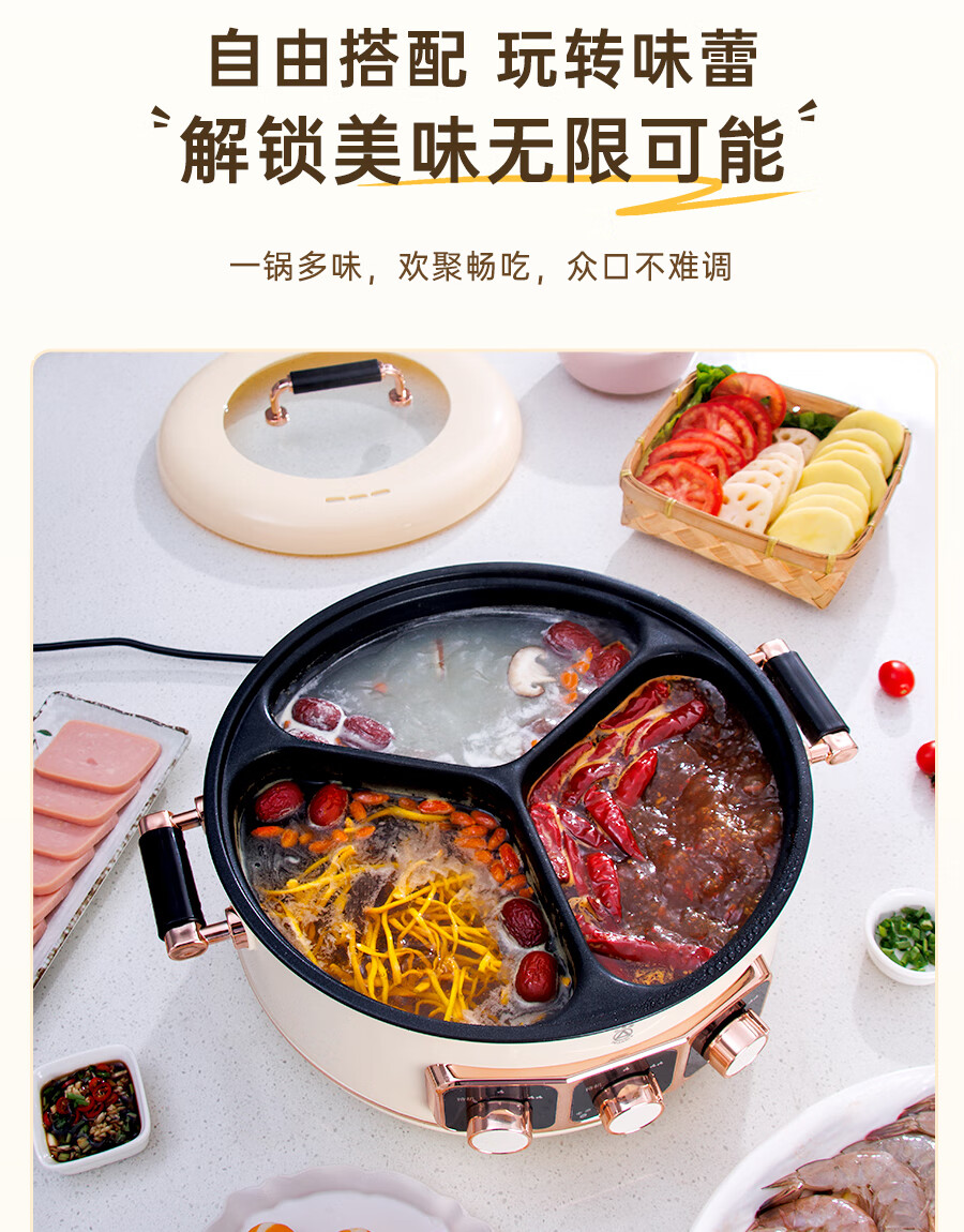 三角牌 一体电火锅 火锅专用锅 电煮锅电炒锅电热锅蒸煮家用多功能电锅 5L 【1300W大功率】配不锈钢蒸笼京东自营